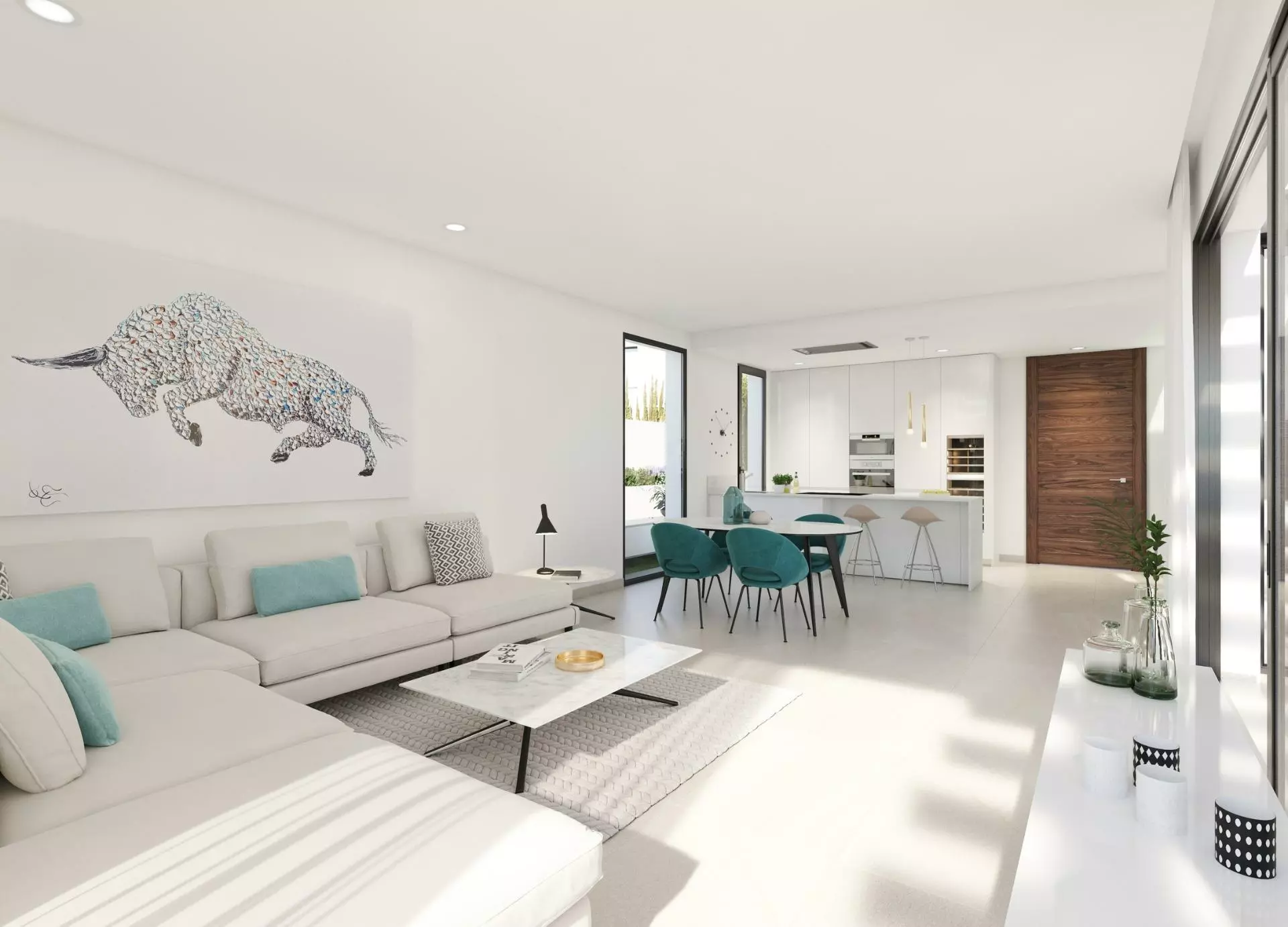 These villas are available with either 3 or 4 bedrooms and feature 3 bathrooms. This layout accommodates families and guests comfortably. The center of these homes is defined by an open-plan living and dining space that seamlessly connects to a contemporary integrated kitchen. This layout allows for flexible uses, whether it’s hosting gatherings or enjoying casual family meals. Some of the units come with a basement that offers a blank canvas to personalize into various uses such as a gym, home cinema, or recreational area.