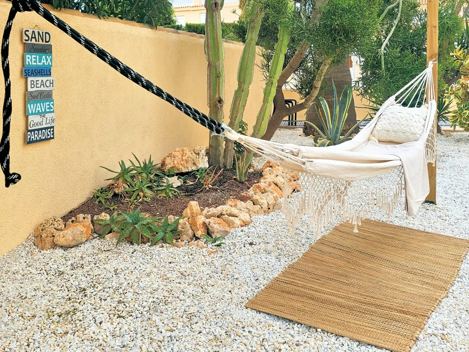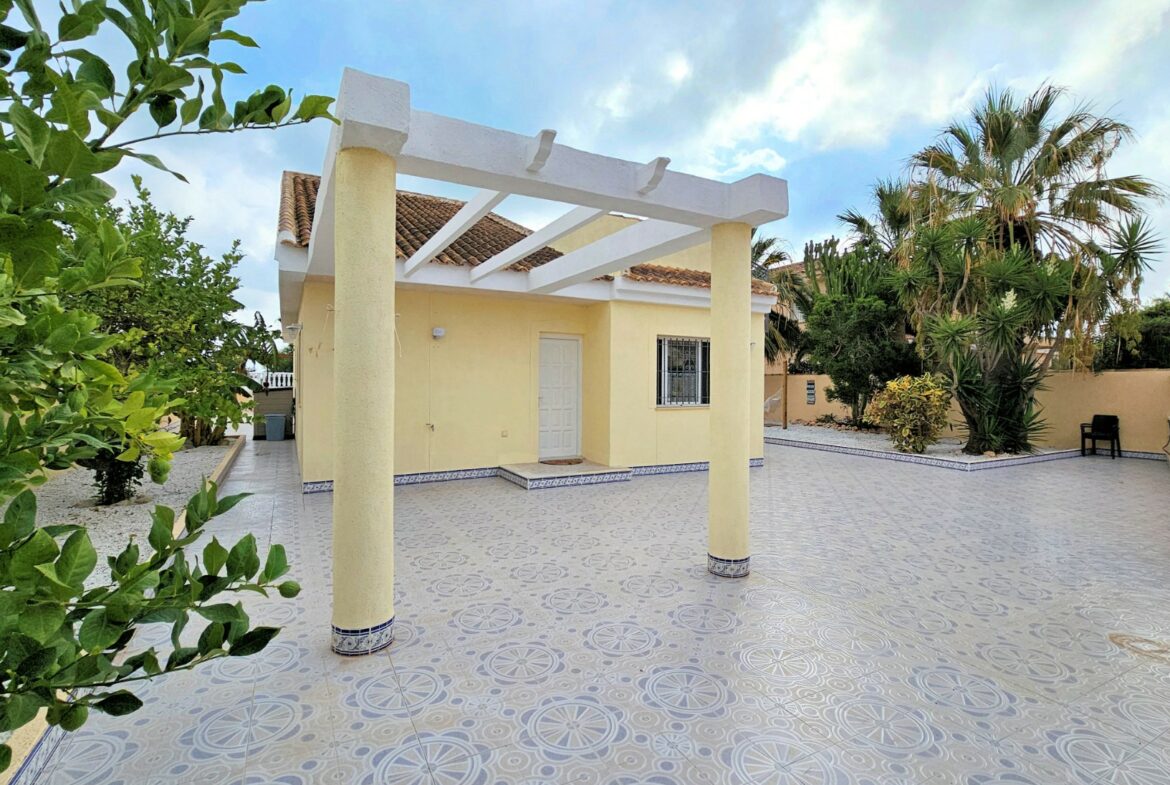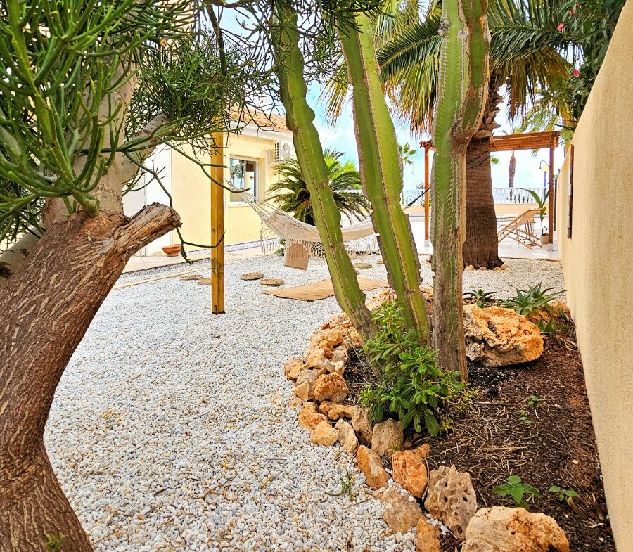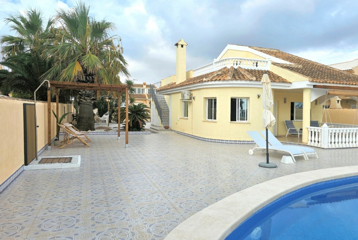 This villa is positioned in the neighbourhood of Estrella de Mar, nestled in a tranquil area surrounded by greenery and directly adjacent to the beach of the Mar Menor.