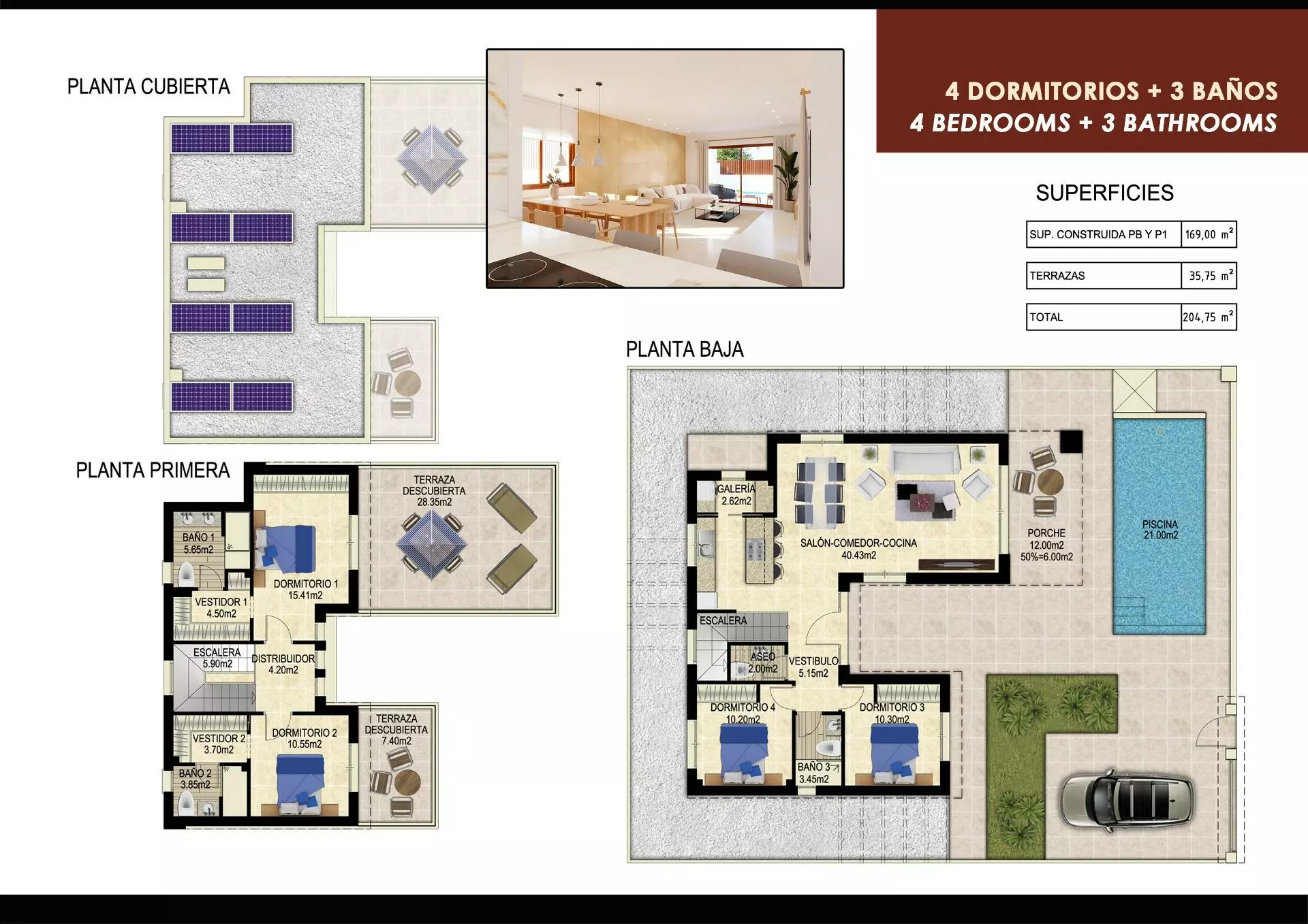 - 3 bedrooms and 3 bathrooms with multiple terraces.