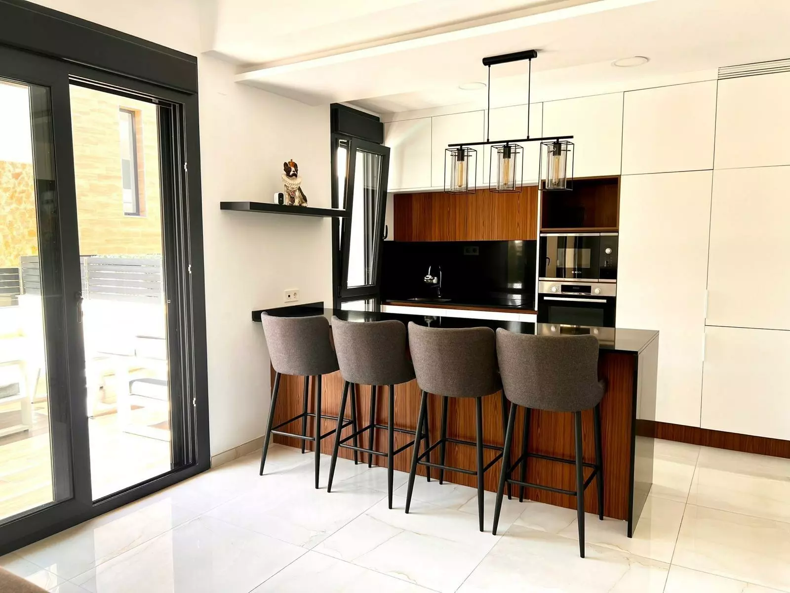This chalet includes three bedrooms, which offer ample space for family or guests. There are three full bathrooms, providing convenience for everyone in the household. The modern kitchen is fully equipped, making meal preparation straightforward.