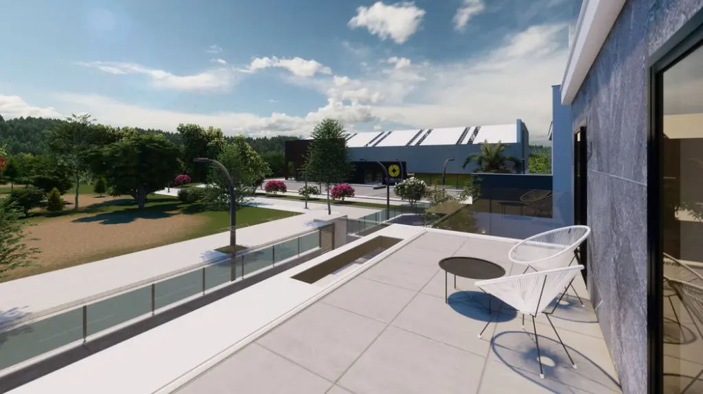 These newly constructed villas typically feature three bedrooms and three bathrooms. The open concept kitchen is designed for fluid movement and interaction, making daily routines more efficient. There is a spacious living and dining area, characterized by large windows that overlook the pool and garden area. This design not only maximizes natural light but also enhances the connection between indoor and outdoor spaces.
