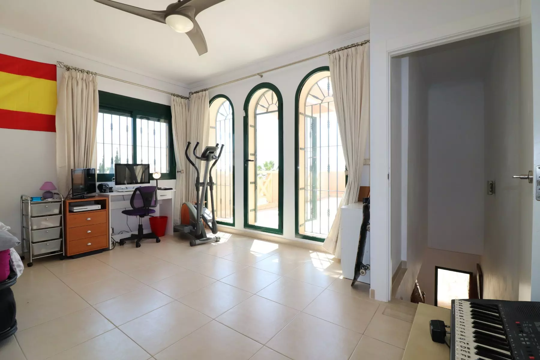 This four-bedroom detached villa in Ciudad Quesada sits in a prime location within the La Fiesta neighborhood, known for its exclusive properties. The Costa Blanca South area offers a variety of amenities and attractions, making it a sought-after destination for both permanent residents and vacationers.