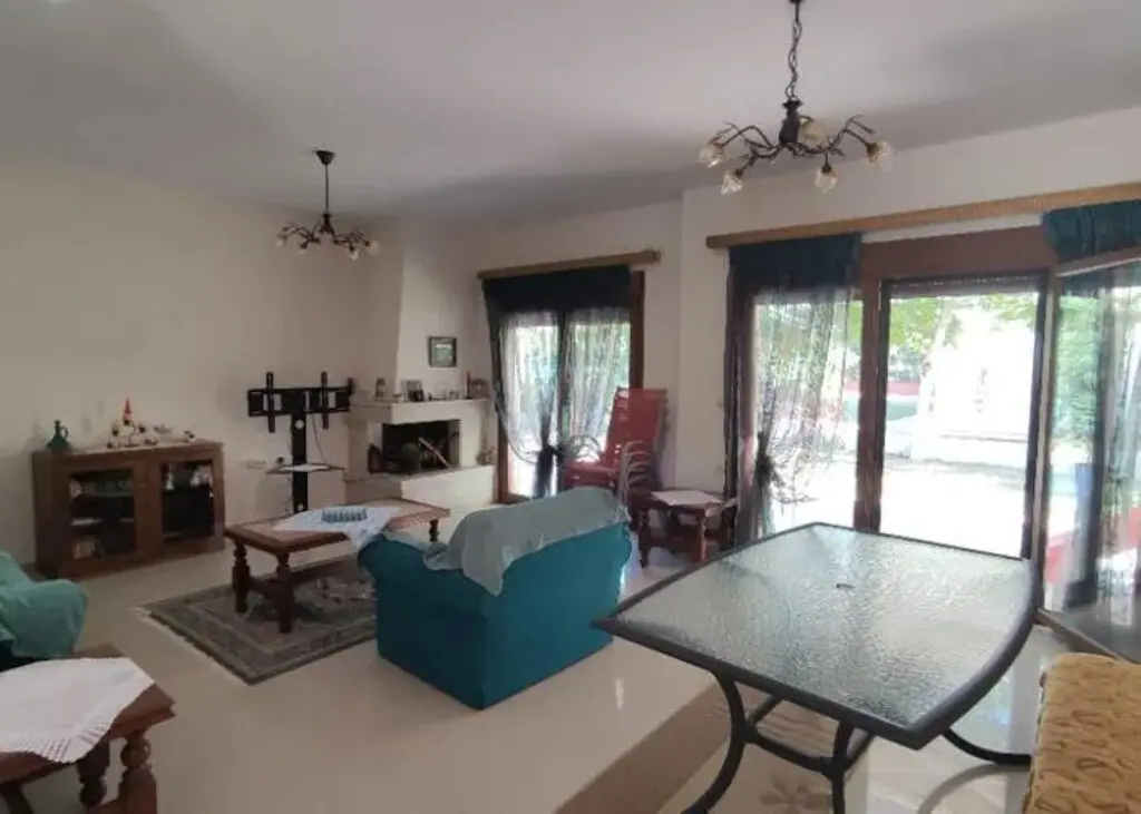 For sale is a three-storey villa situated in Kassandra, Chalkidiki, covering an area of 255 square meters. This property offers multiple living arrangements across its semi-basement, ground floor, and first floor, making it suitable for families or groups.