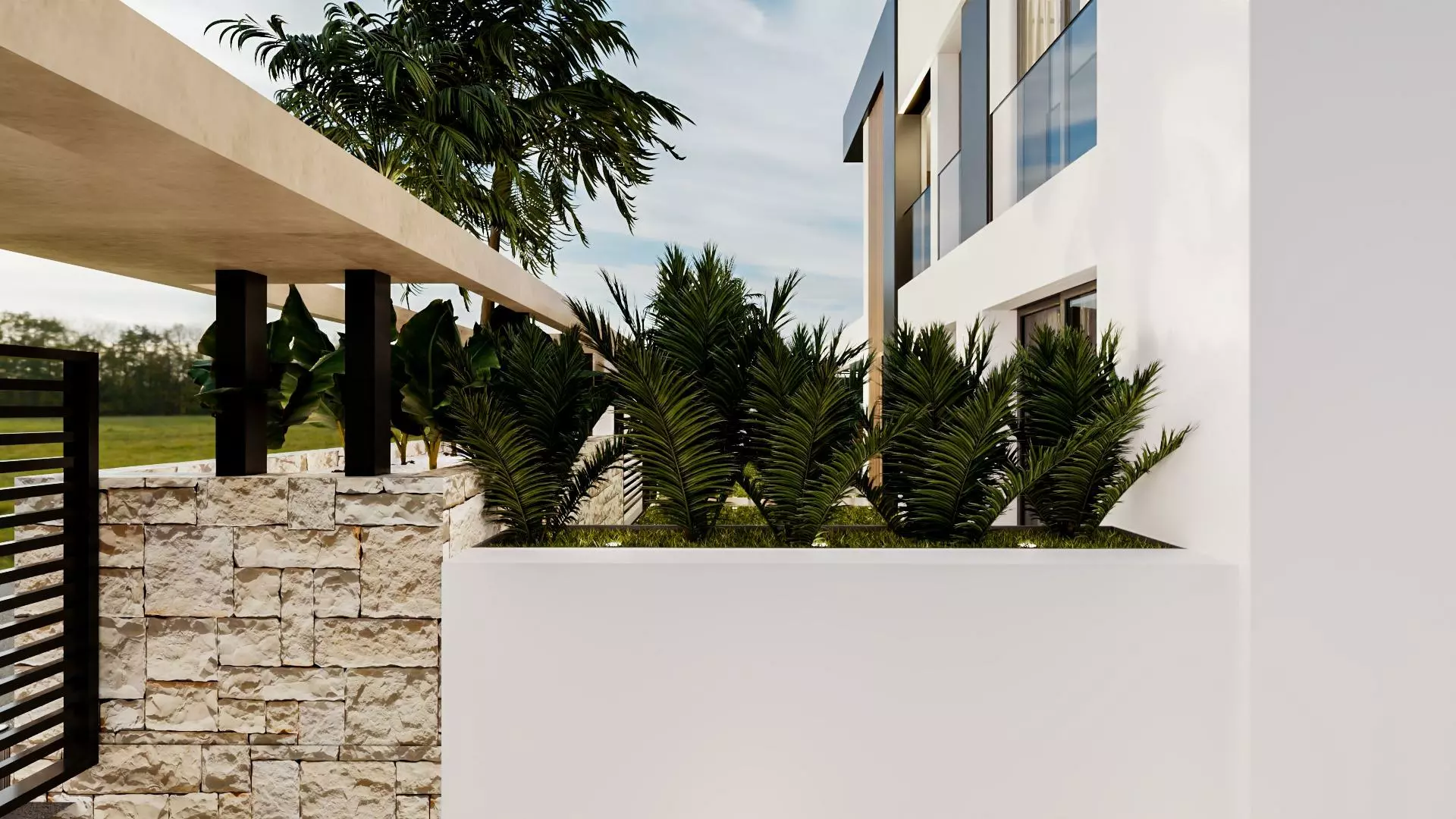 - A chill-out area equipped with an automatic bioclimatic pergola, outdoor kitchen, and toilet