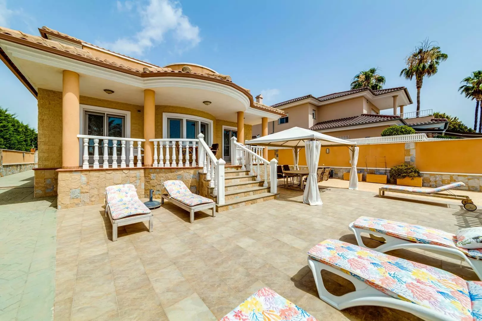 Discover this villa that offers a blend of functionality and a prime location in the exclusive San Javier area. Upon entering, you are greeted by a low-maintenance garden featuring decorative tiles and an automatic entry system, which leads to a private parking space. The outdoor setting includes a saltwater pool complemented by a jacuzzi and an outdoor shower, providing an inviting space for year-round use.