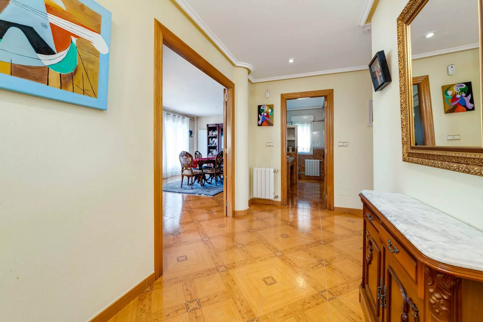 The ground floor welcomes you with a foyer that opens into a fully equipped, independent kitchen. This level includes two well-sized bedrooms, one being a master suite that features a walk-in closet and an en-suite bathroom, which includes both a jacuzzi and a shower. A 38 m² living-dining area flows directly onto a front terrace, offering additional space for relaxation. A guest restroom is also available on this level for convenience.