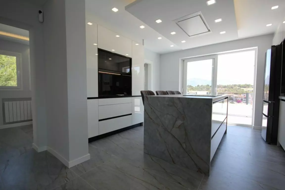 The villa sits on a private plot exceeding 1,500 square meters. The outdoor space is complemented by well-maintained garden areas, providing a serene environment away from the hustle of daily life. Features such as air conditioning and a heating system ensure optimal comfort throughout the year.