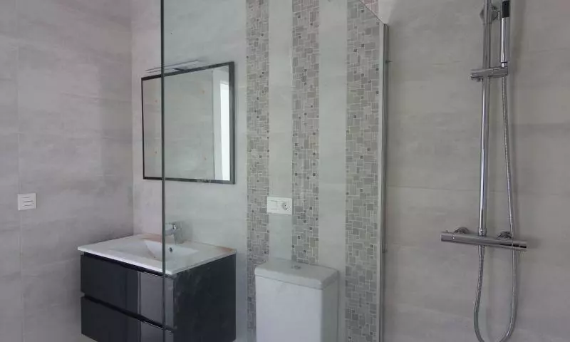With three bedrooms, the property provides enough space for family members or guests. The two bathrooms come equipped with essential fixtures, including bathroom furniture, mirrors, shower enclosures, and taps. The choice of materials and installations reflects a focus on functionality.