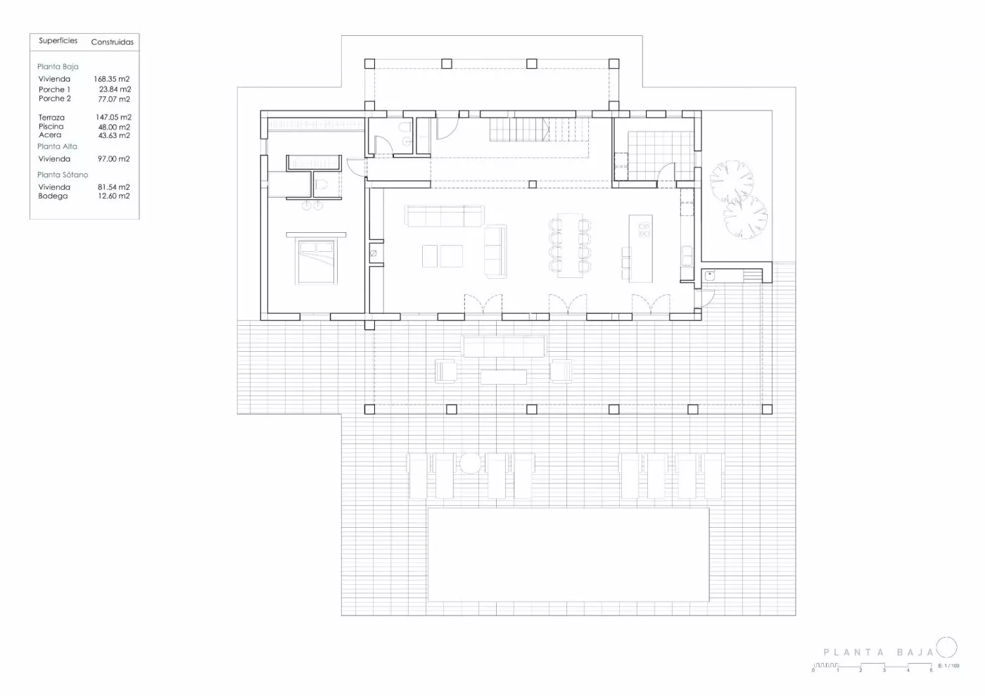 The ground floor features a large living-dining area that seamlessly connects with an open plan kitchen. This layout is practical for everyday living as well as entertaining. The master bedroom comes equipped with a walking wardrobe and an adjoining bathroom, ensuring convenience. Additionally, a front terrace provides direct access to the pool area, enhancing outdoor leisure options.