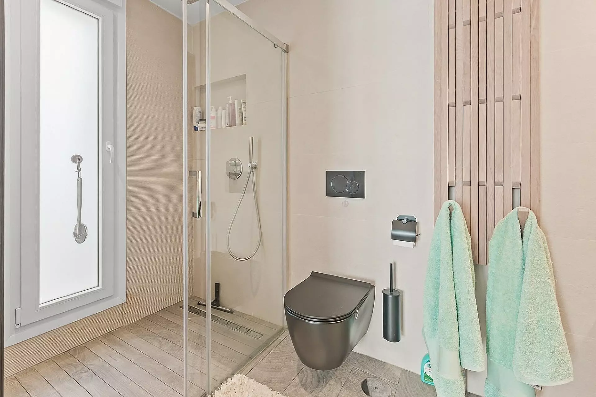 The villa includes three bedrooms, providing ample space for residents and guests. Two bathrooms feature underfloor heating, offering a modern touch. Additionally, a guest toilet enhances convenience for visitors. The open-plan living area benefits from abundant natural light, creating a welcoming atmosphere.