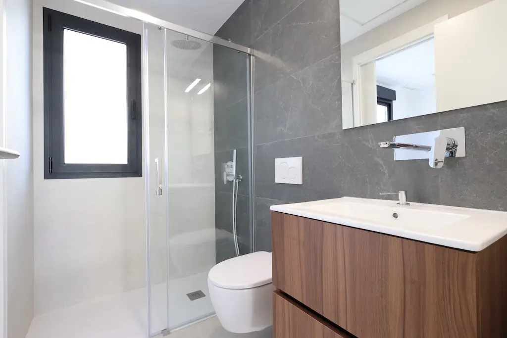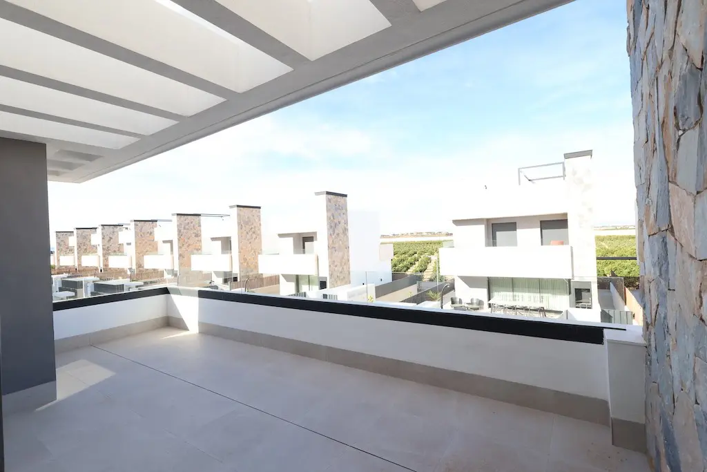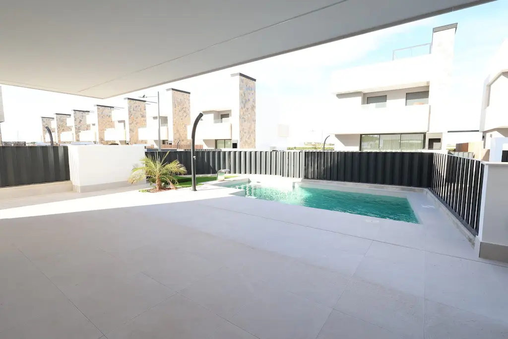 This exclusive villa features three bedrooms, designed to provide functionality while maintaining a modern aesthetic. The independent plot comes with a terrace and garden, allowing for outdoor space that residents can personalize. Inside, you will find a large living room and kitchen, along with three bathrooms to accommodate family and guests.