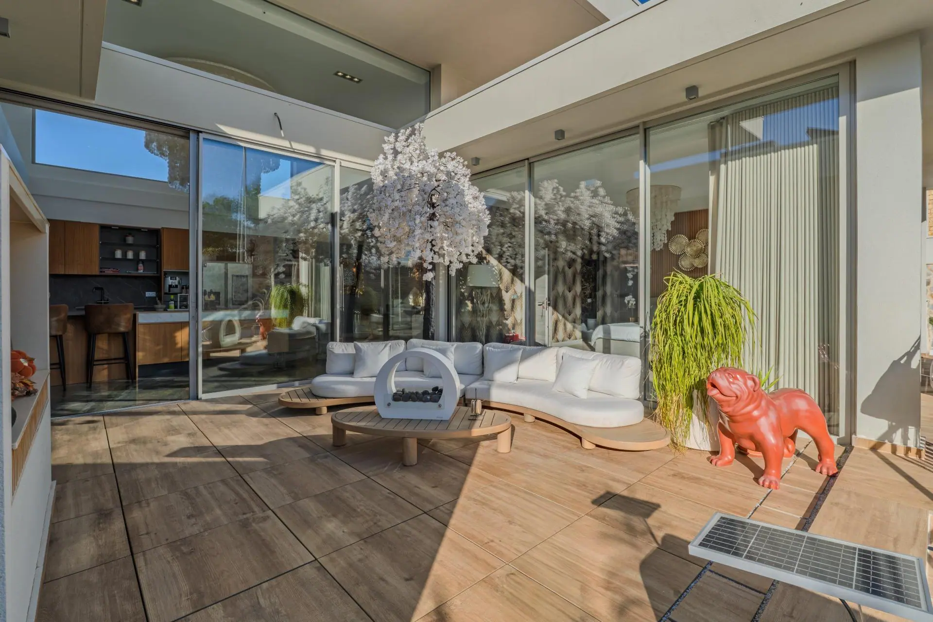 Every aspect of this villa prioritizes sustainability and performance. The property operates entirely on solar energy, which helps lower running costs while promoting responsible living. It features a sophisticated filtration and purification system that ensures clean air and water, enhancing wellness throughout the home.