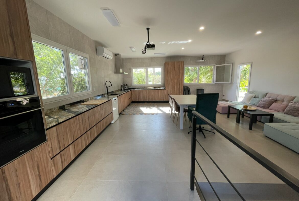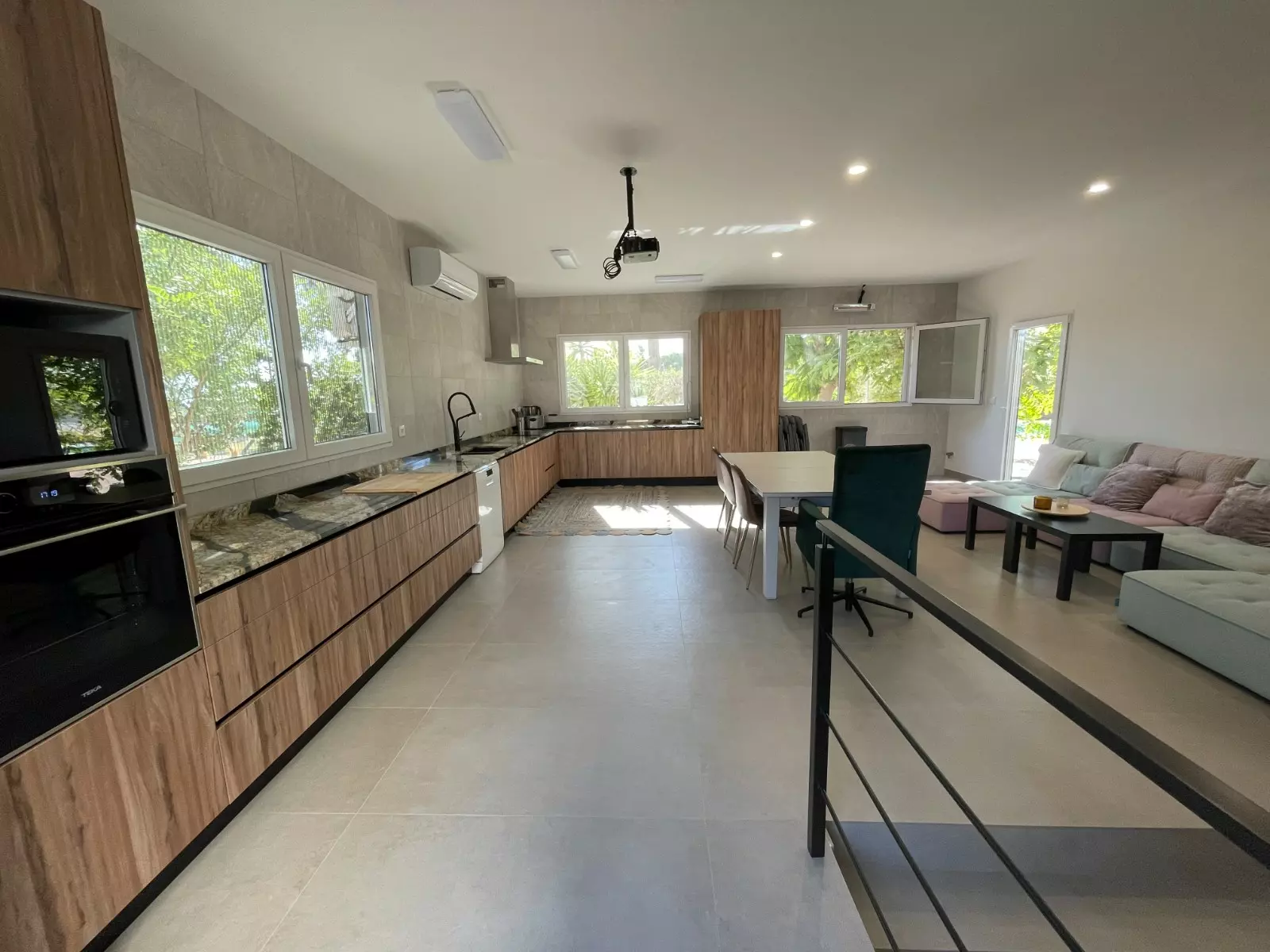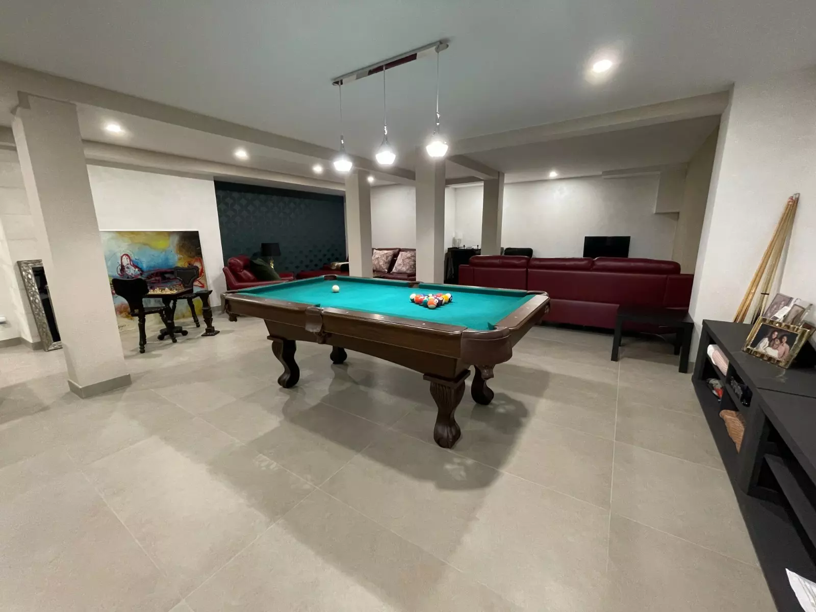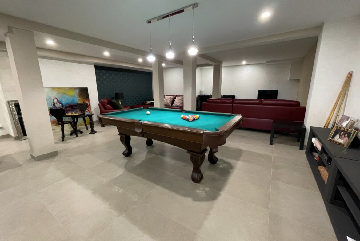 The villa offers an open-plan basement of 70 m² that includes a second fully equipped kitchen. This space is versatile, suitable for gatherings, family entertainment, a gym, or even a home cinema. The basement has direct access to the main kitchen and a sizable 70 m² porch, which is also air-conditioned for comfort during warmer months.