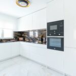 This villa sits on a flat plot with a south-facing orientation. It features three bedrooms and two bathrooms, making it suitable for families or those needing extra space. The master bedroom includes an en-suite bathroom with an Italian shower. There are also built-in wardrobes and a dressing room for practical storage solutions. The additional two bedrooms share a spacious bathroom, complete with a bathtub.