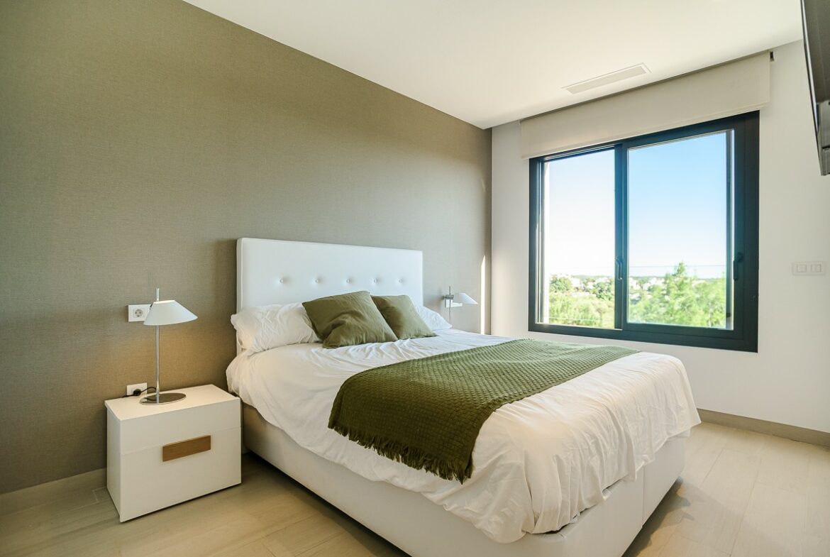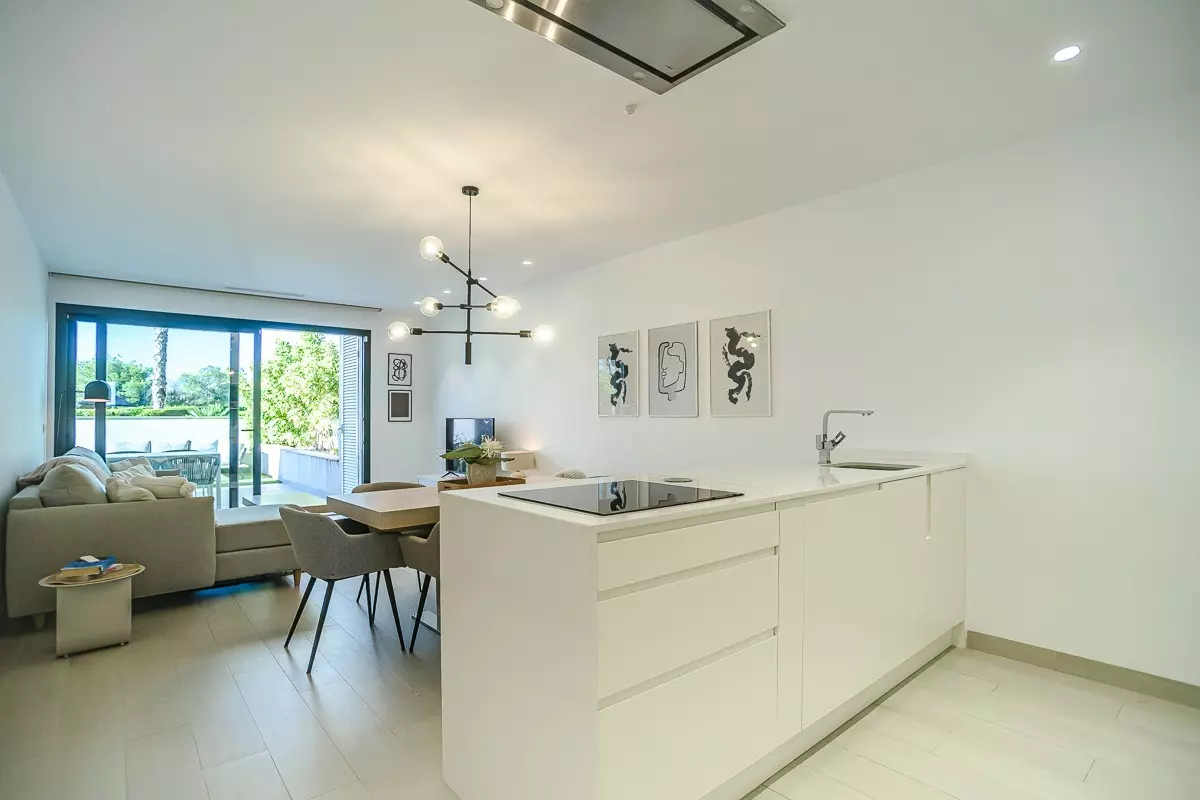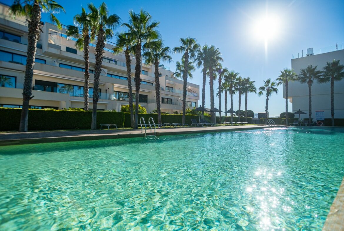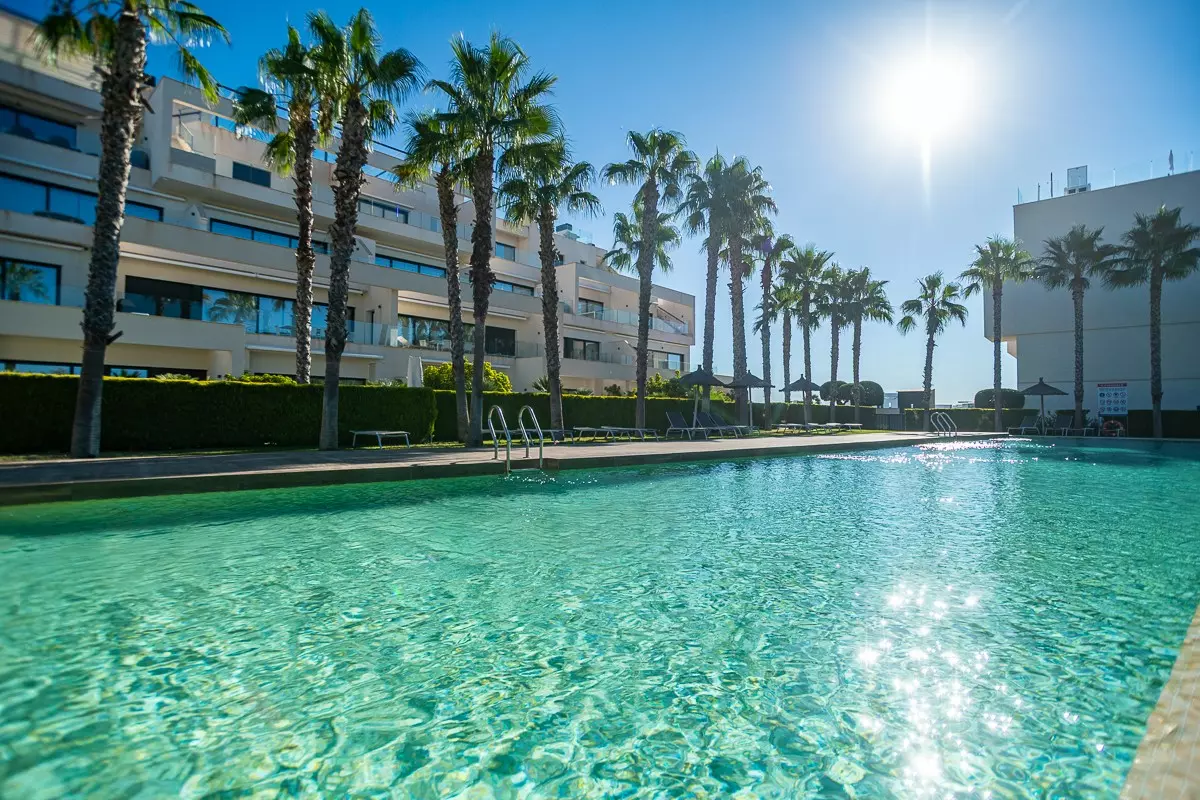 The resort also offers three dining options. These include an Italian restaurant, a sushi restaurant, and a clubhouse featuring a golf shop and changing facilities complete with showers. Security is a priority, as the entire domain is monitored, with camera surveillance present at the entrance. This location strikes an ideal balance between tranquility and accessibility, being only 4 km from local amenities, 10 km from the beach, 60 km from Alicante Airport, and 45 km from Murcia Airport.