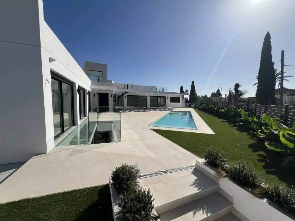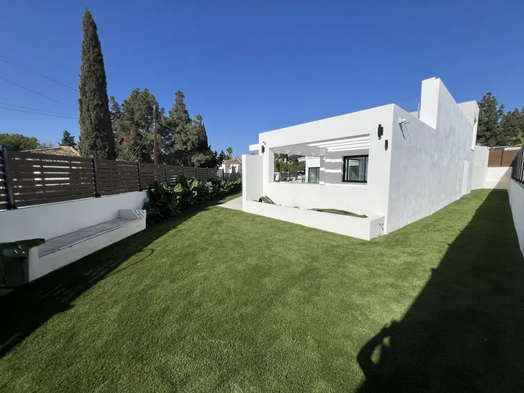 Located in a community of three villas in the El Chaparral area of Mijas Costa, this property presents a modern lifestyle with many amenities. The villa is a short distance from the Mediterranean Sea, offering a convenient location for beach enthusiasts. This residence features a private pool and a landscaped garden designed for outdoor activities.