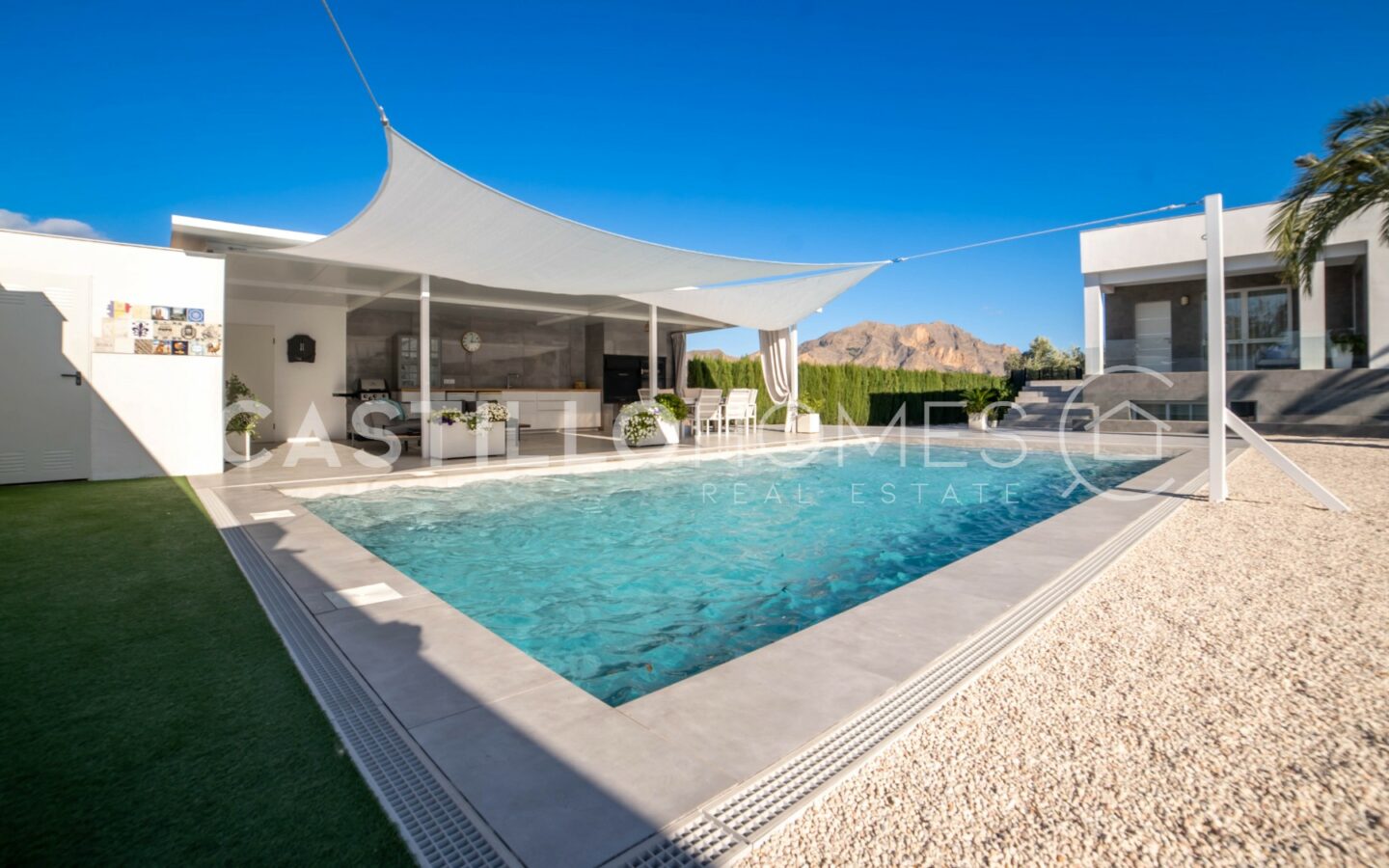 Welcome to this modern villa located in the sought-after area of Montepinar, Orihuela. This location offers a blend of nature and quality of life. Surrounded by mountains, this 151 m² property features three bedrooms, two bathrooms, and a guest toilet, all set on a generous 1,579 m² plot. This property combines contemporary elements with practical design, making it suitable for anyone seeking a modern home that offers both indoor and outdoor areas.