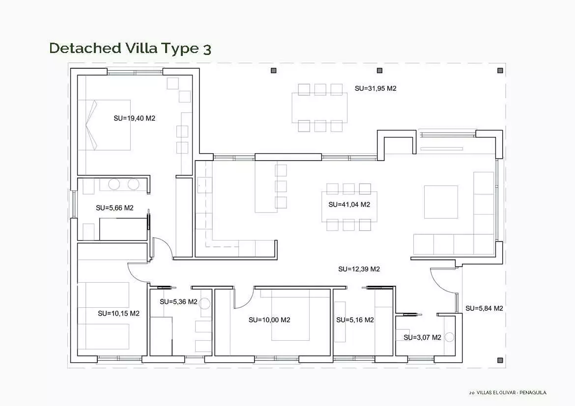 Each villa sits on a private plot of 800 m², designed for maximum comfort and accessibility. Buyers can choose from five different layouts, featuring 3 or 4 bedrooms, 2 or 3 bathrooms, and built areas ranging from 130 to 178 m². All homes include large covered terraces, suitable for enjoying outdoor living throughout the year.