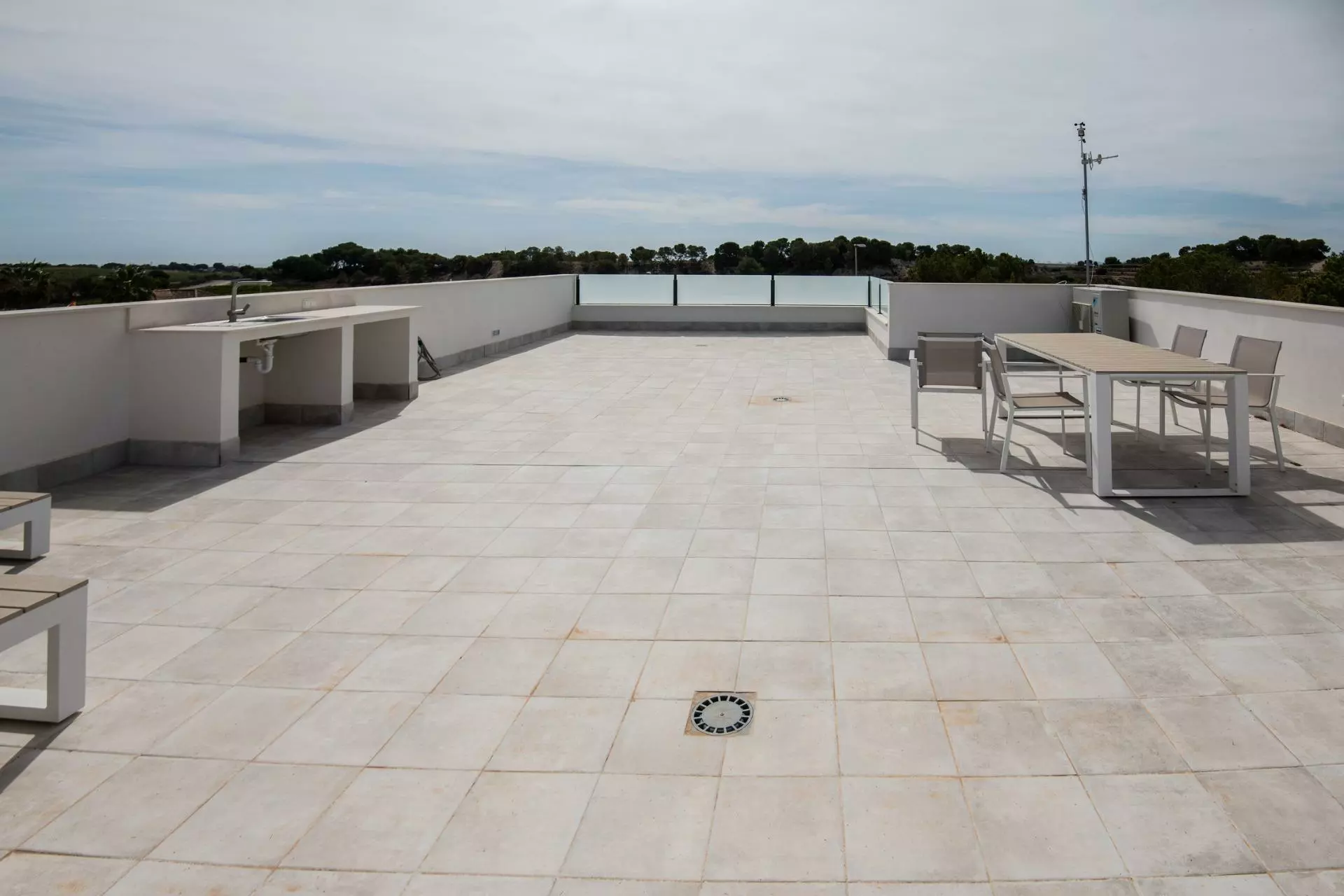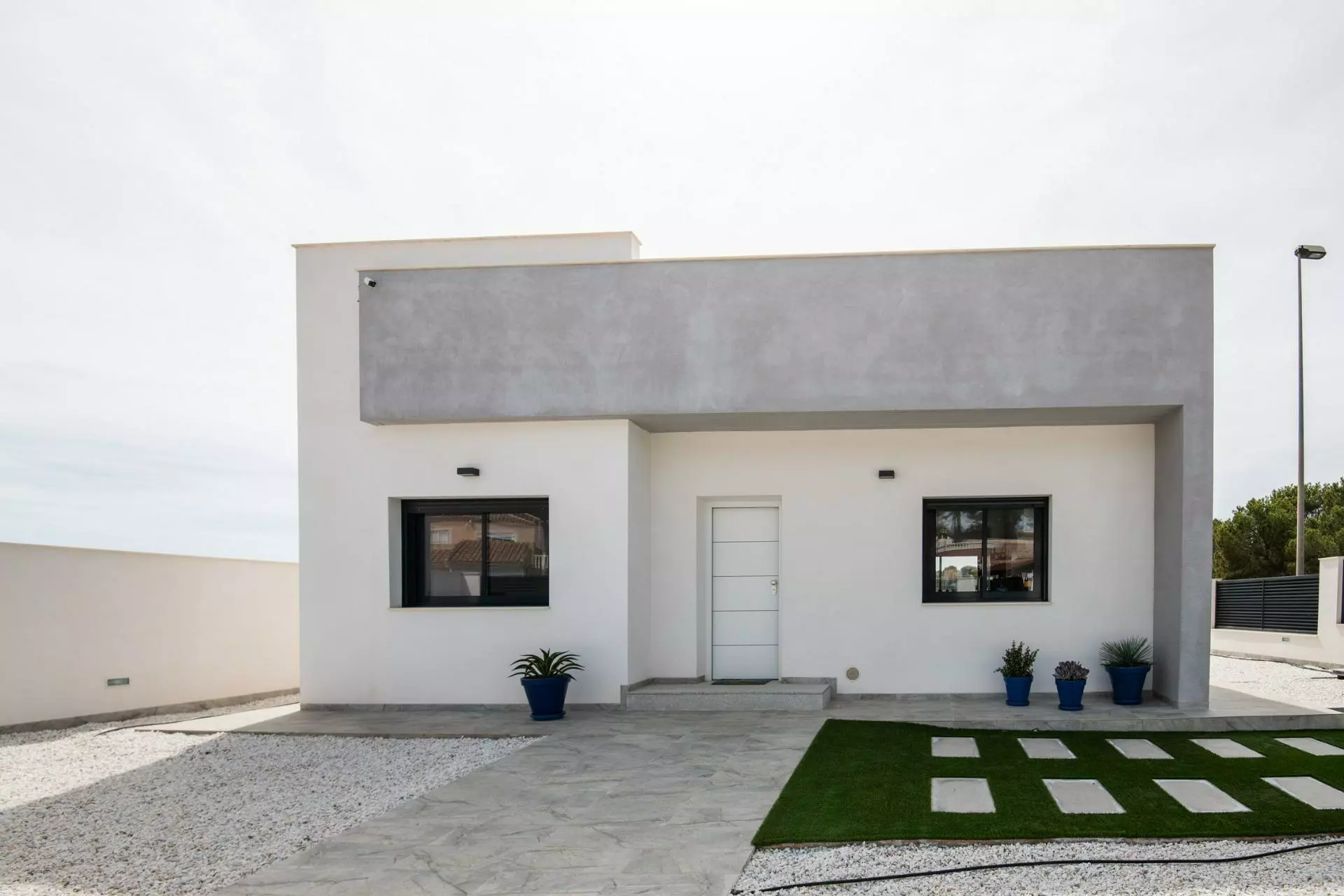 Each villa is situated on independent plots starting at 300 square meters. This offers ample outdoor space for gardening or other activities, enhancing the living experience. Additionally, there is a large solarium, an excellent spot to soak up the sun and enjoy views all around.