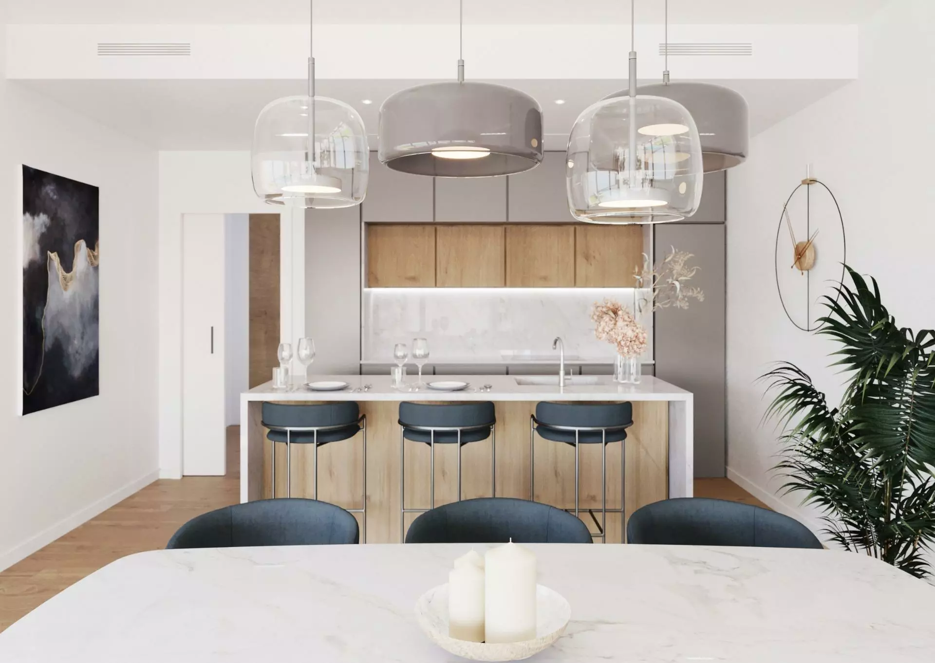 You can choose between 2 and 3-bedroom villas thoughtfully designed to make the most of the Mediterranean environment. These homes feature sizable outdoor areas that allow for the enjoyment of the Costa Blanca’s climate. Whether you’re interested in hosting gatherings or simply relaxing outdoors, the space is flexible enough for various outdoor furniture, including tables and sun loungers.