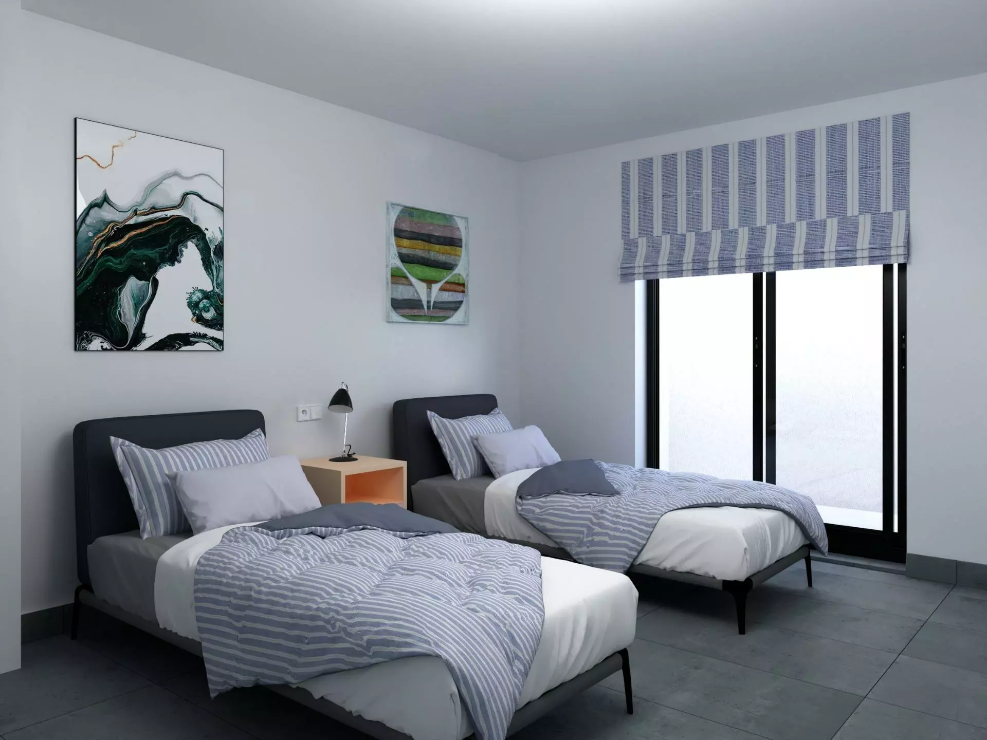 This exclusive new construction project features three independent villas, each with modern designs and private swimming pools complete with cascading waterfalls. Located in San Javier, Murcia, these single-story residences offer three bedrooms and two bathrooms, in addition to a private solarium and parking on the plot. The open-plan layout includes a fully furnished kitchen and a bright living-dining area that work together for a functional living space.