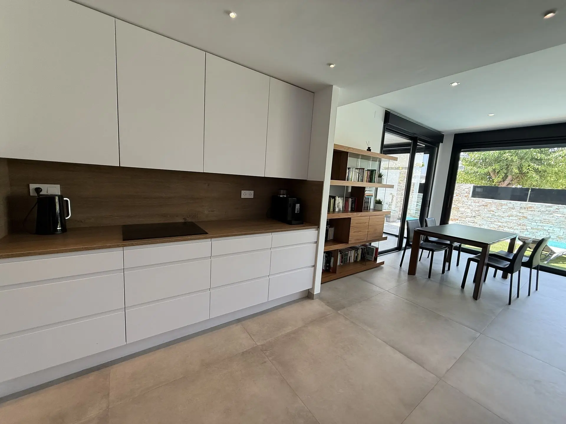 This villa is equipped with numerous practical features designed to enhance daily living. Underfloor heating throughout the house ensures consistent warmth, while the central air conditioning system can be individually controlled in each room via an app. Security measures include external cameras with WiFi access and an ADT-installed alarm system, directly connected to local authorities.