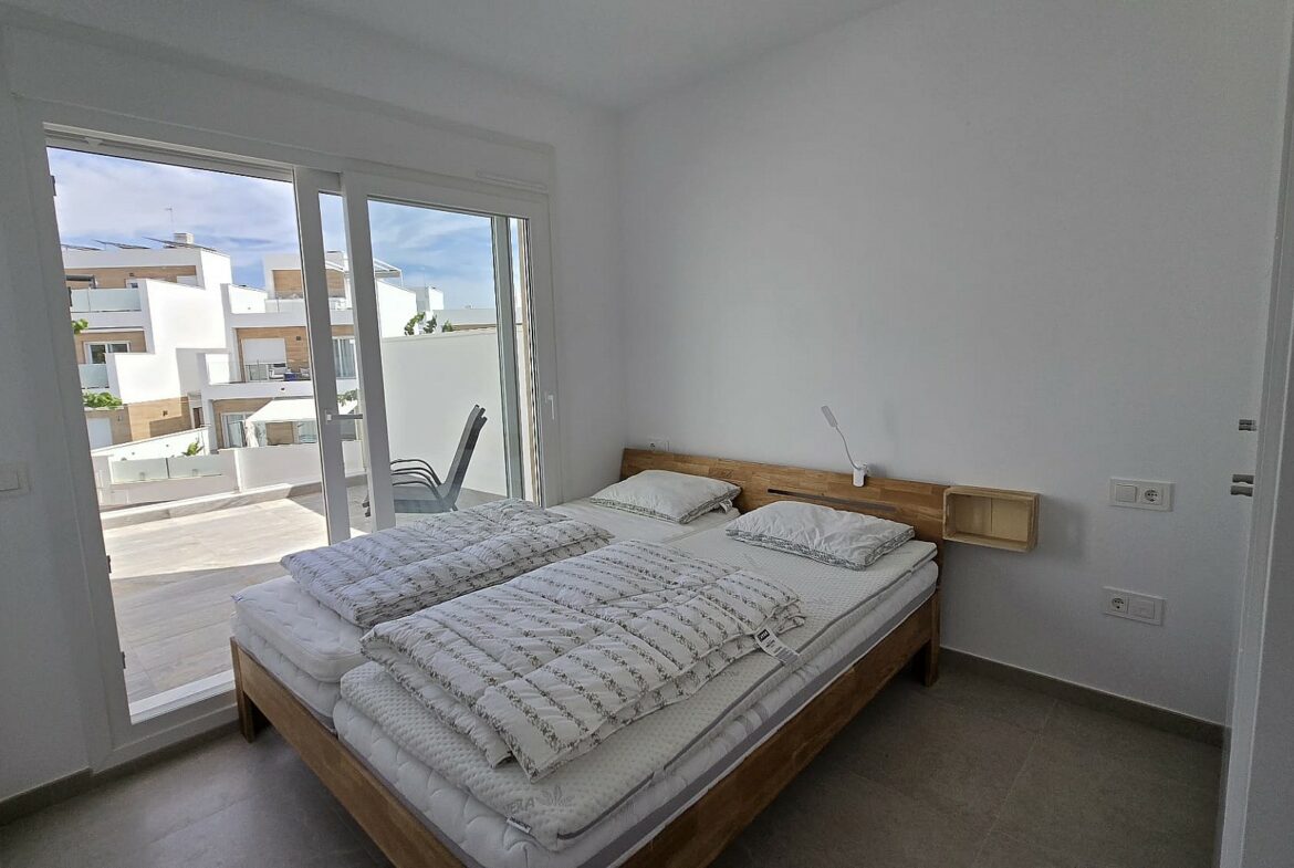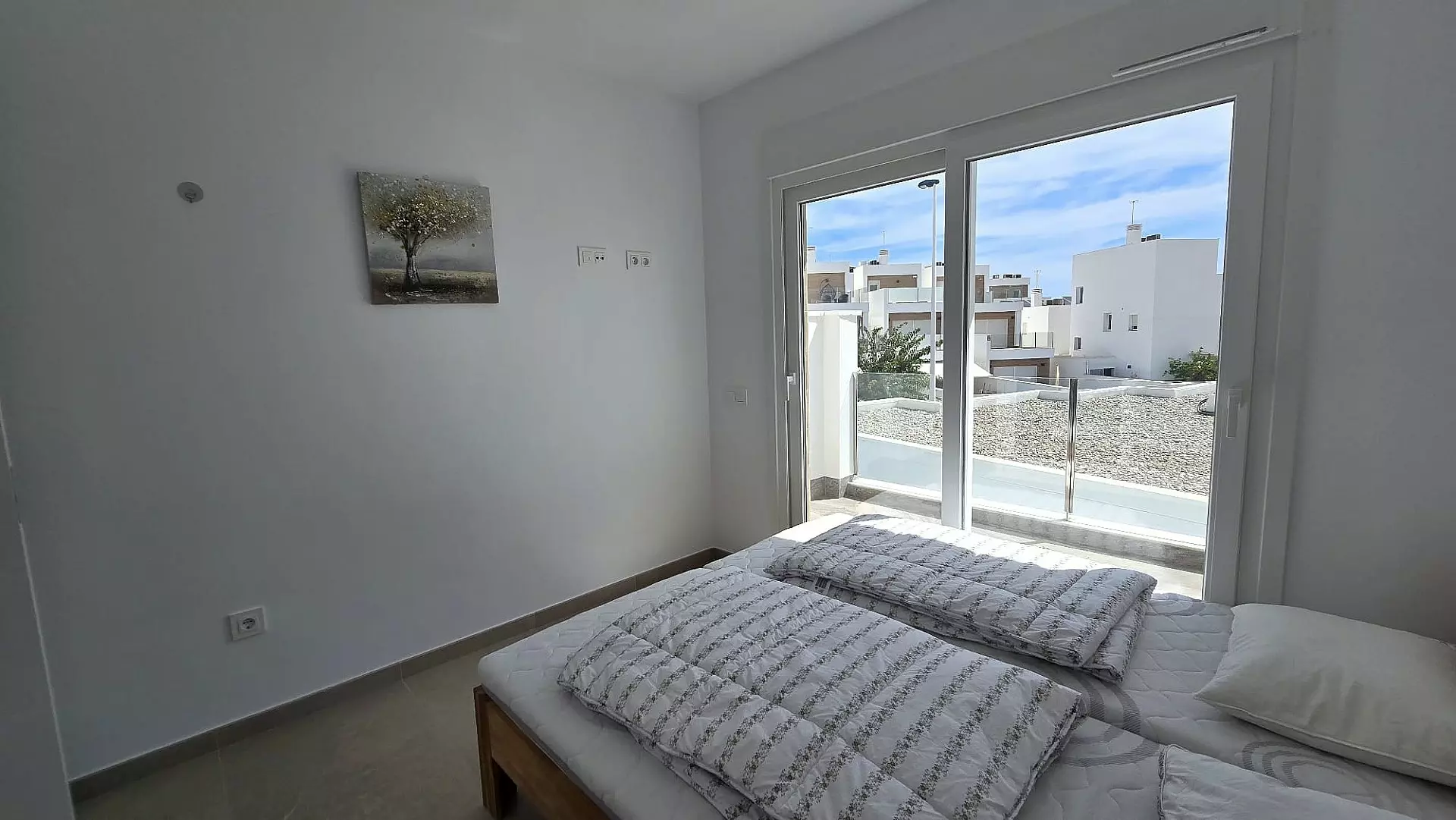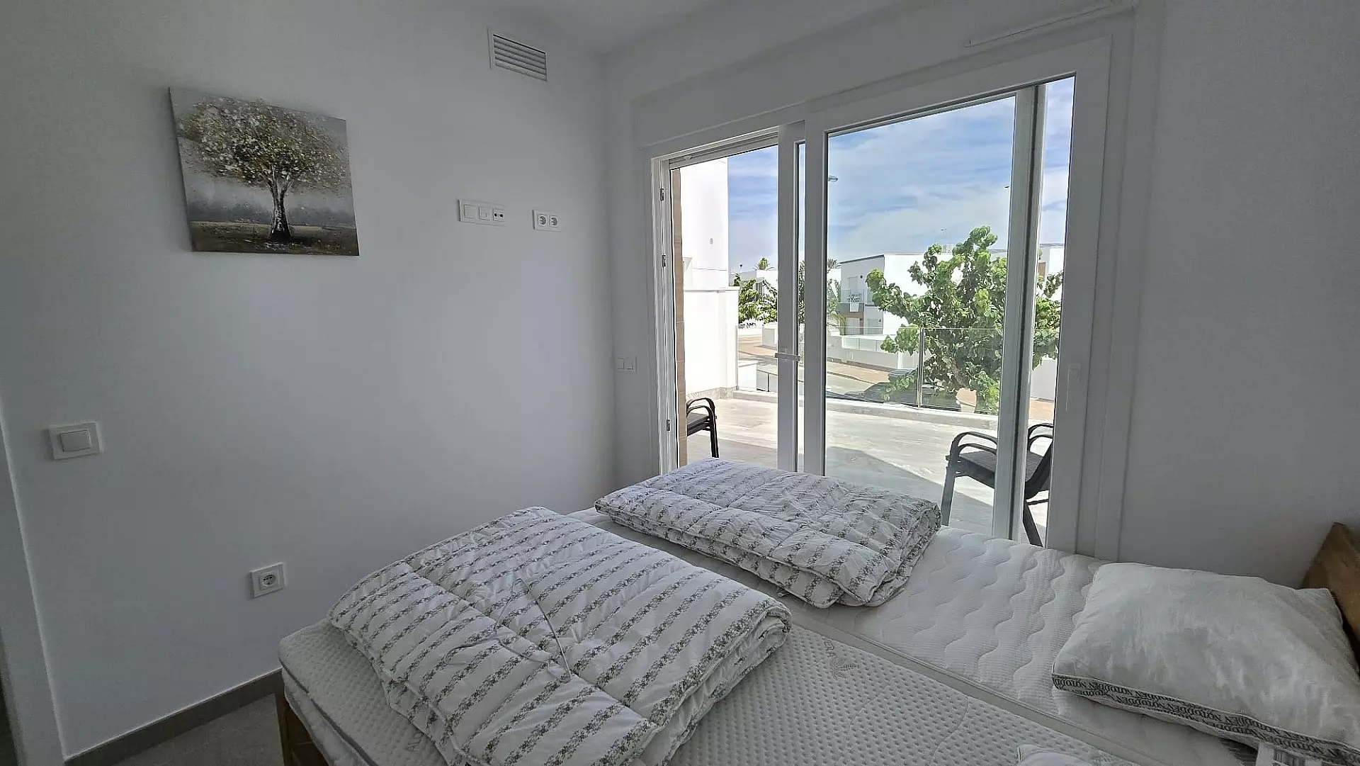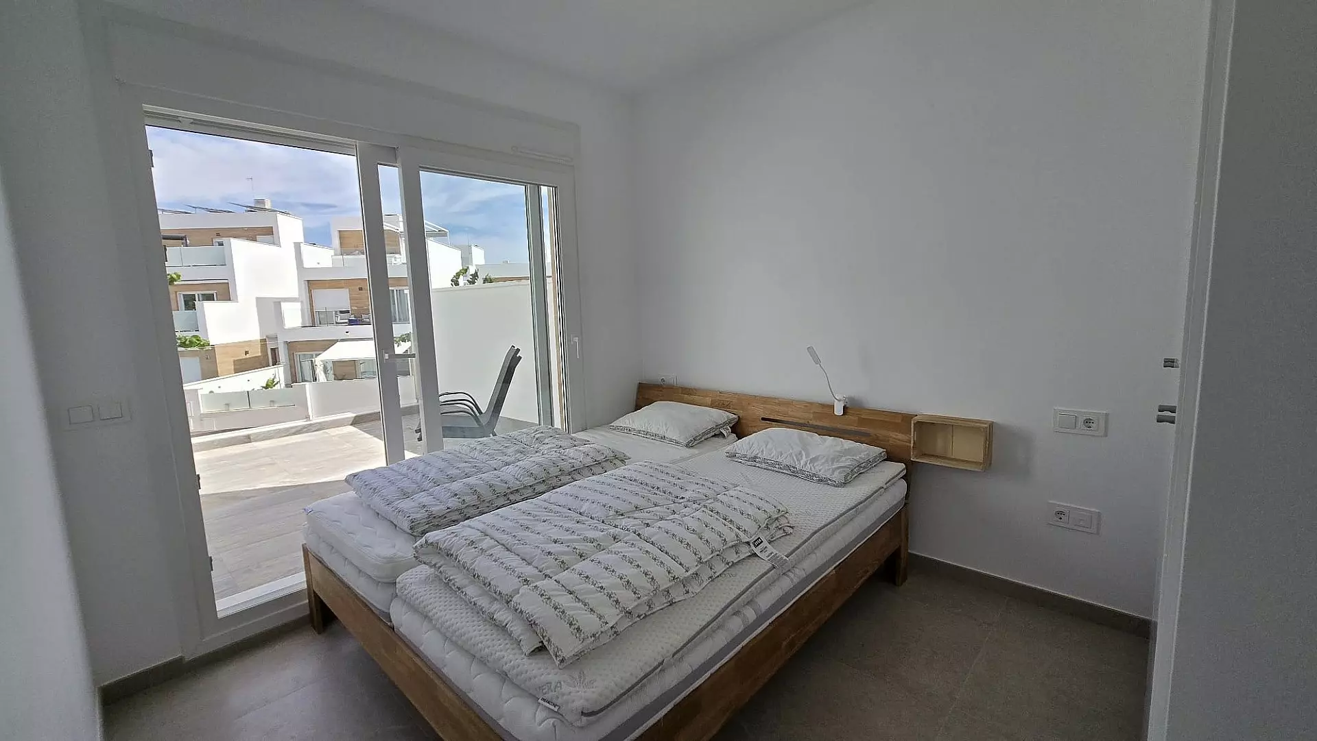 This villa comprises three bedrooms and two bathrooms, accommodating up to six individuals comfortably. The open living space receives ample natural light and includes direct access to the garden. High-quality materials are used throughout the interior, and the property comes fully furnished. Key items included are garden furniture, a lounge set, sunbeds, air conditioning, a smart TV, a washing machine, and a fully equipped kitchen featuring a dishwasher and freezer.