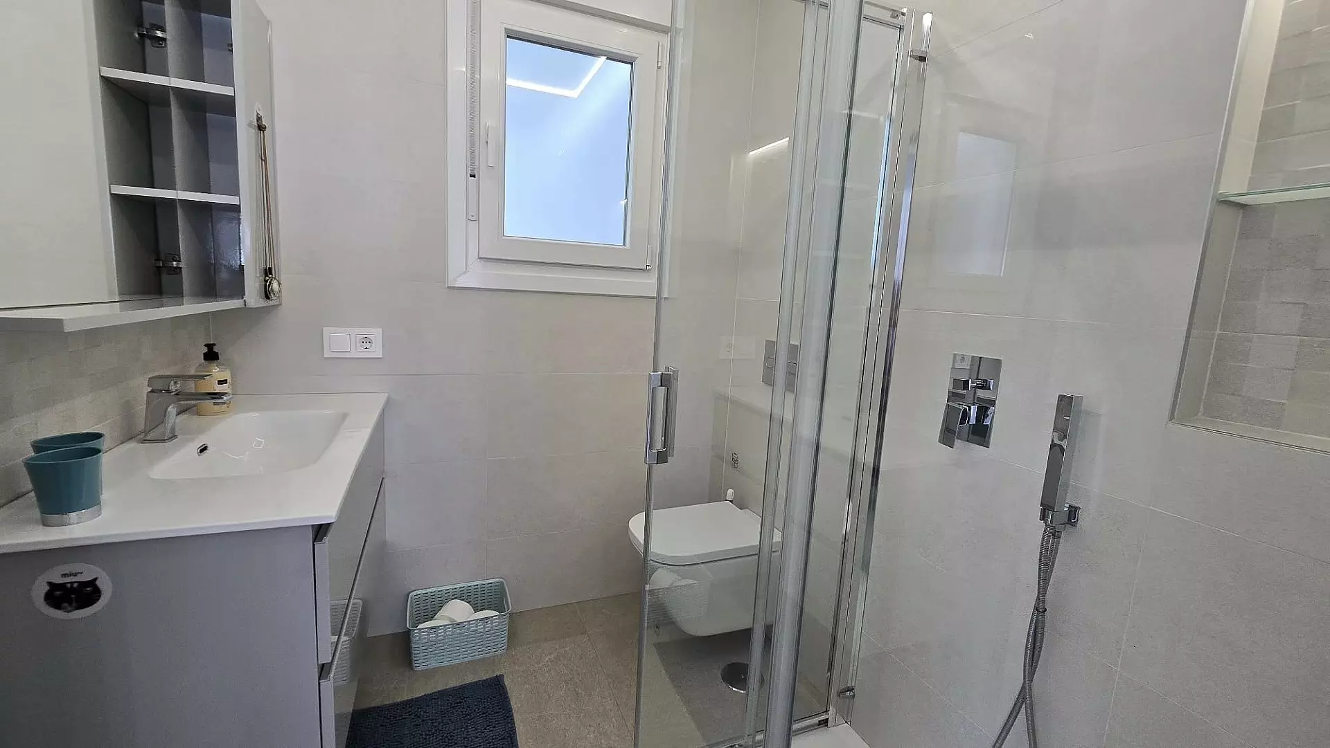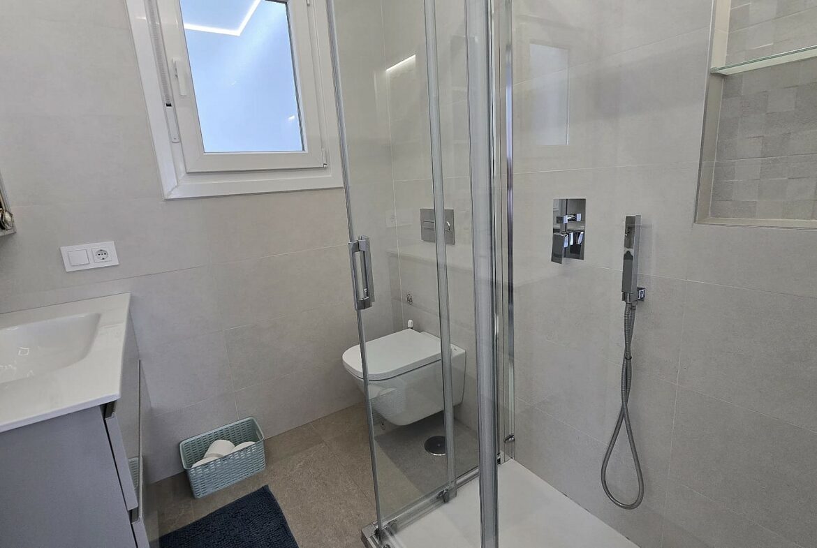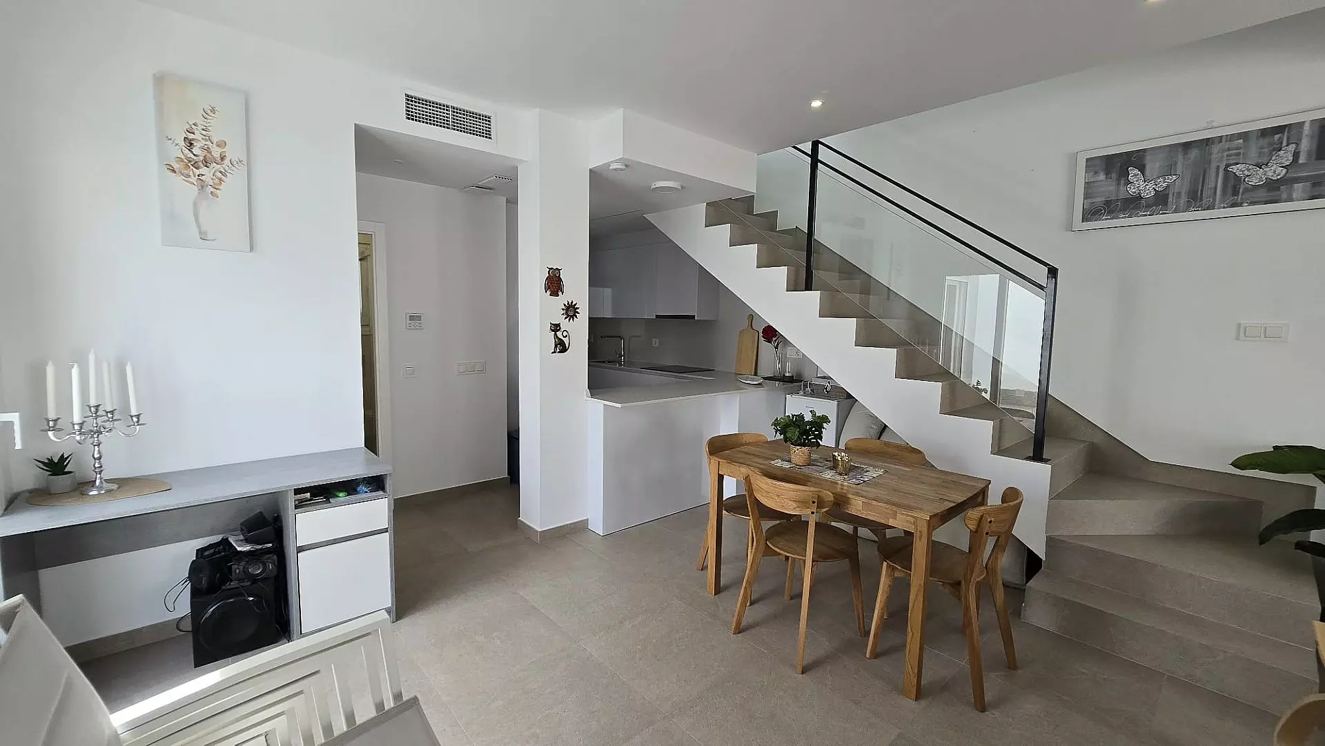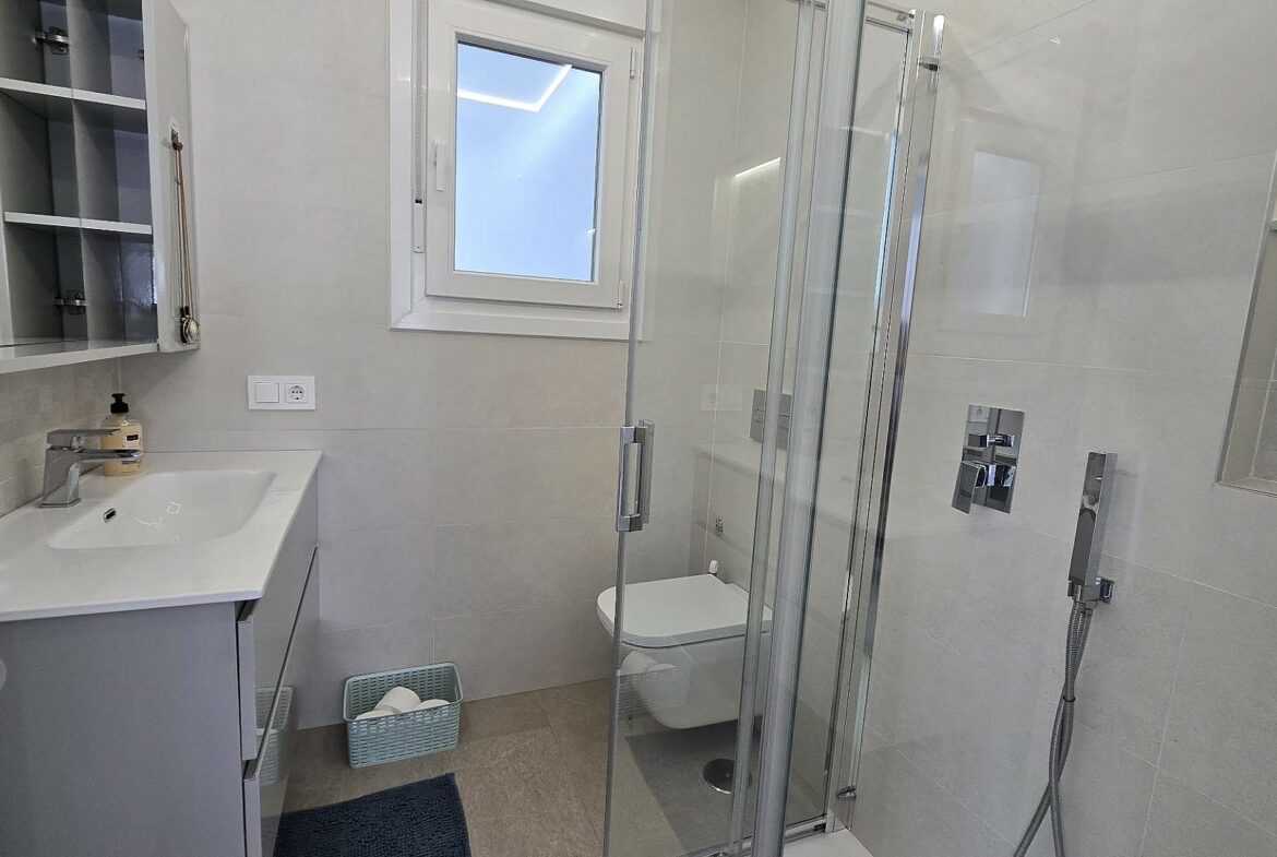 This villa comprises three bedrooms and two bathrooms, accommodating up to six individuals comfortably. The open living space receives ample natural light and includes direct access to the garden. High-quality materials are used throughout the interior, and the property comes fully furnished. Key items included are garden furniture, a lounge set, sunbeds, air conditioning, a smart TV, a washing machine, and a fully equipped kitchen featuring a dishwasher and freezer.