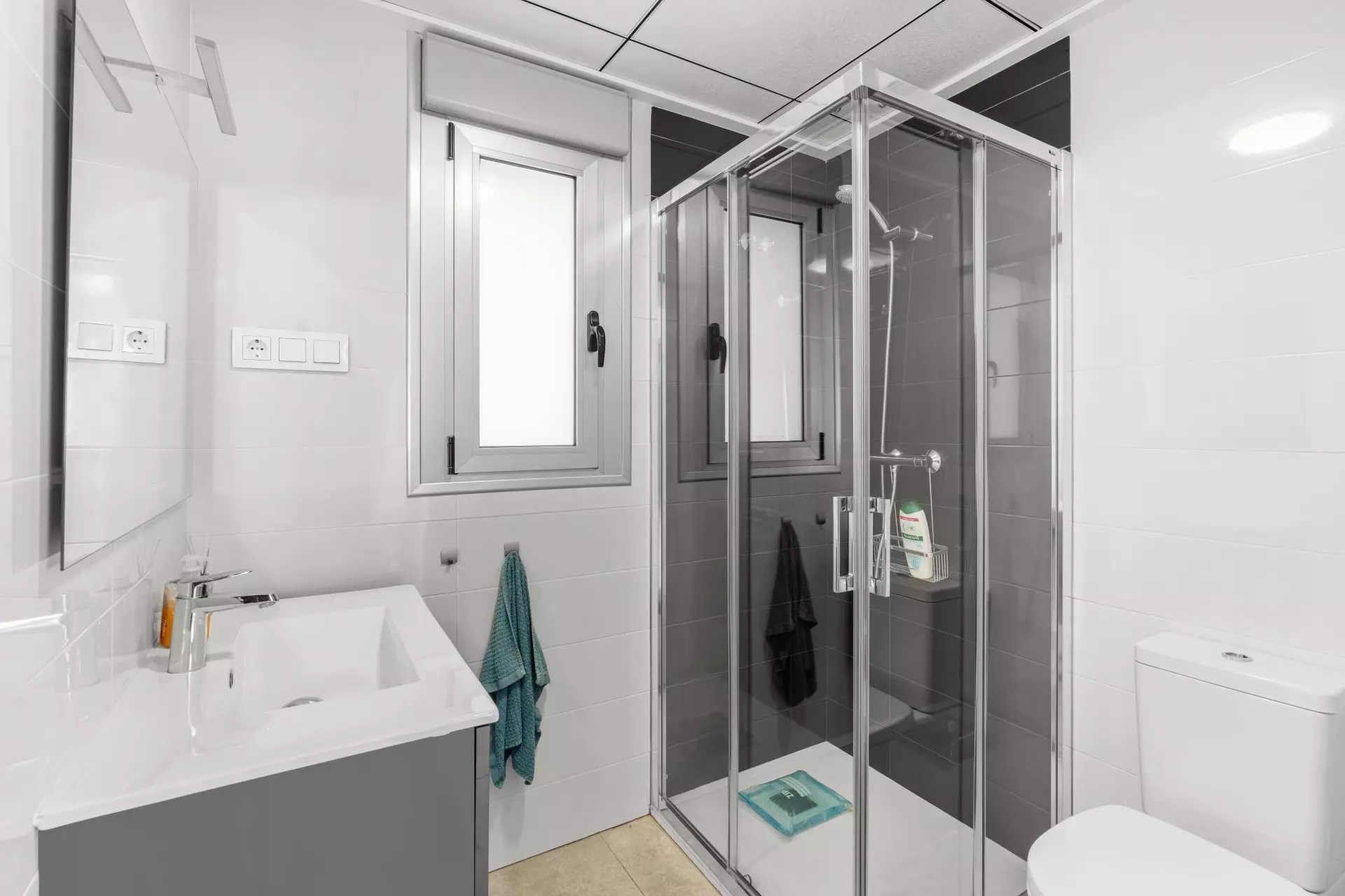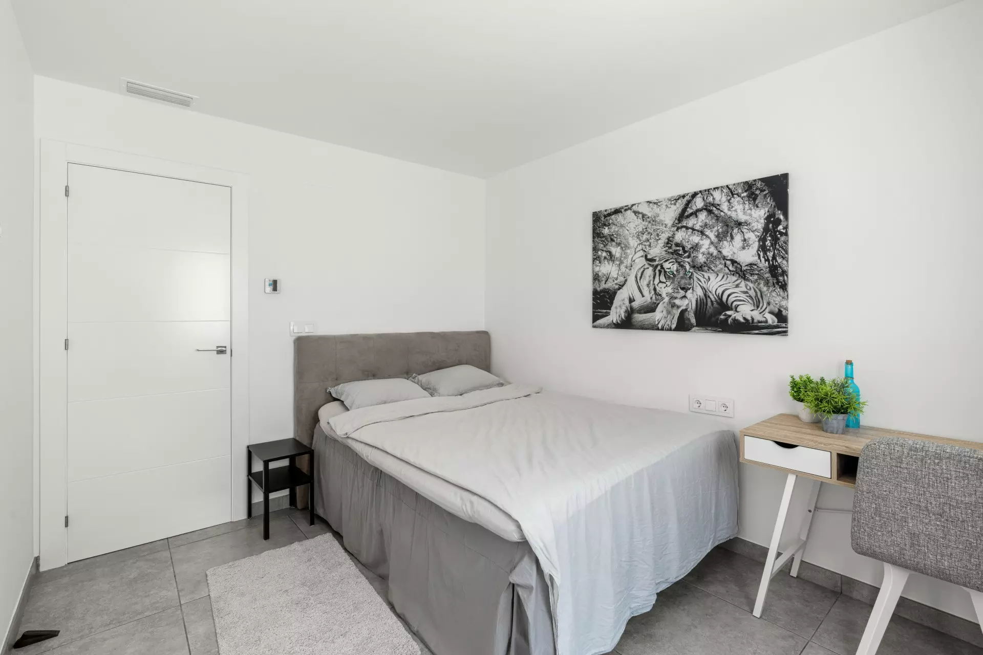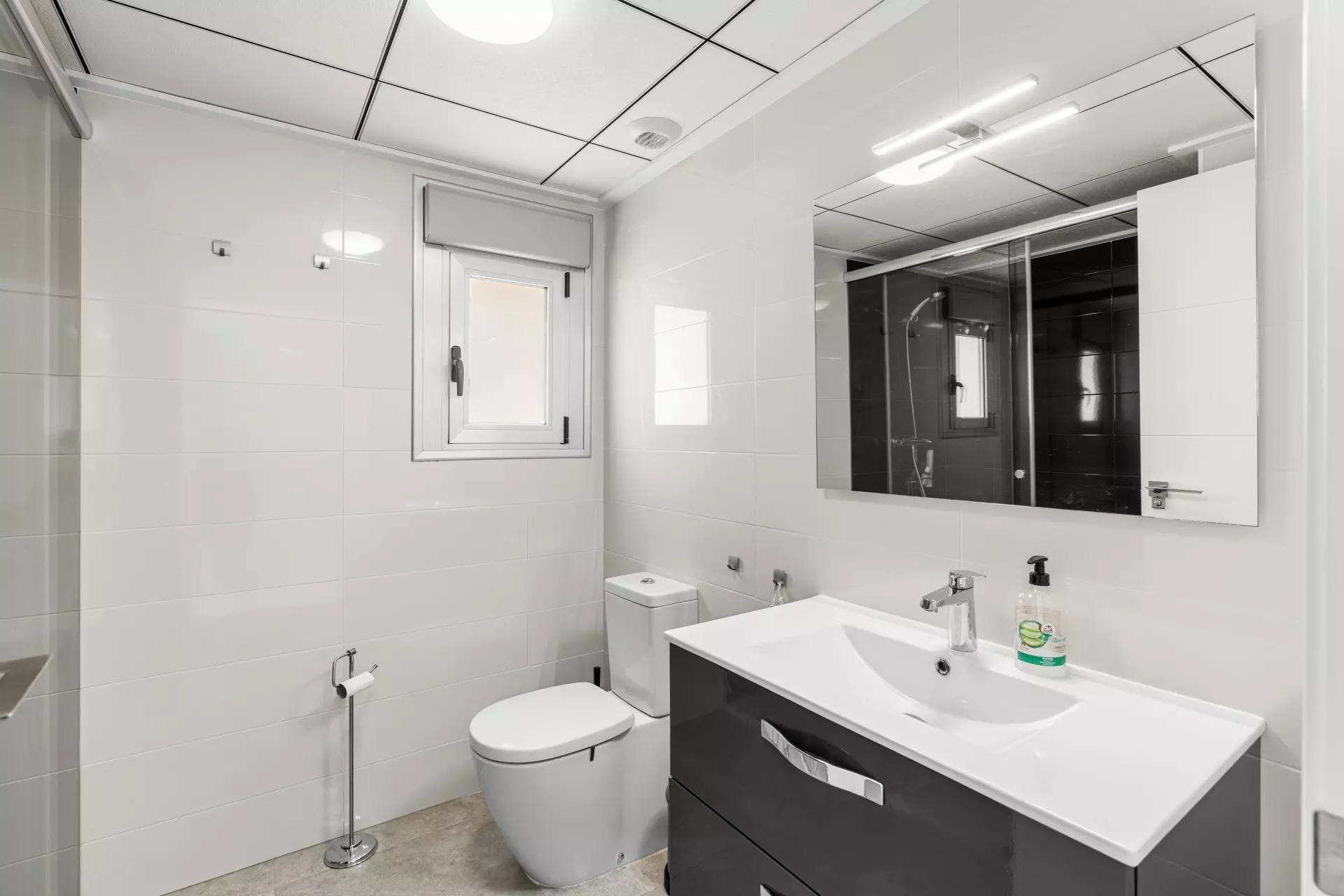 A priority in this property is comfort, demonstrated by the underfloor heating installed throughout the ground floor, which includes the living room, kitchen, and bathroom. The heating continues into the upstairs bathroom and is managed through a smartphone-enabled system. The climate in the villa is controlled via an Airzone system, enabling different temperature settings in each bedroom, the living room, and the kitchen.