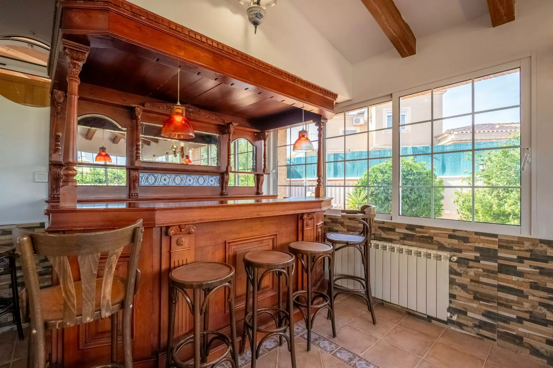 This villa stands out with its extensive garden and inviting pool, providing outdoor spaces ideal for summer enjoyment. It includes a summer kitchen equipped with a fireplace and barbecue, along with a lounge area. These outdoor features can certainly enhance social gatherings or family meals during warm days.