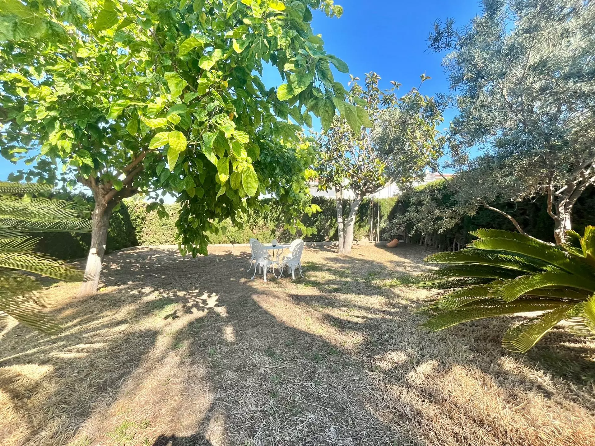 The villa occupies an 800 m² plot, offering a well-maintained landscape that includes areas of natural grass and garden sections. A rustic-style barbecue area adds practicality for outdoor gatherings. The constructed area of the villa spans 180 m², allowing for straightforward room layout and use.