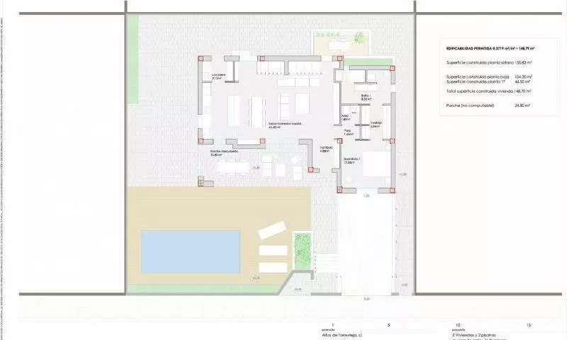 The property includes a private pool, perfect for weekend relaxation or family gatherings. Terraces and a solarium expand outdoor living options, making it easy to enjoy the coastal climate. Central air conditioning ensures a comfortable environment year-round, while underfloor heating adds an extra layer of convenience. Additionally, the property incorporates aerothermic technology for sanitary hot water, promoting energy efficiency.