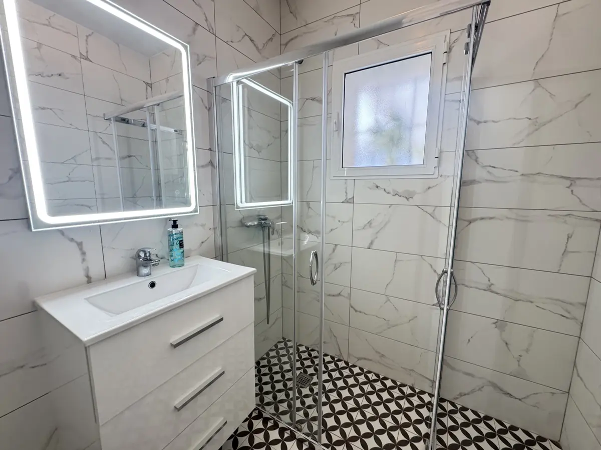 The interior of the villa is modern, enhanced by the renovations that have taken place. A private pool creates an area for relaxation, complemented by a large rooftop solarium that offers exceptional views of the surroundings. This setup is perfect for outdoor activities or soaking up some sun.