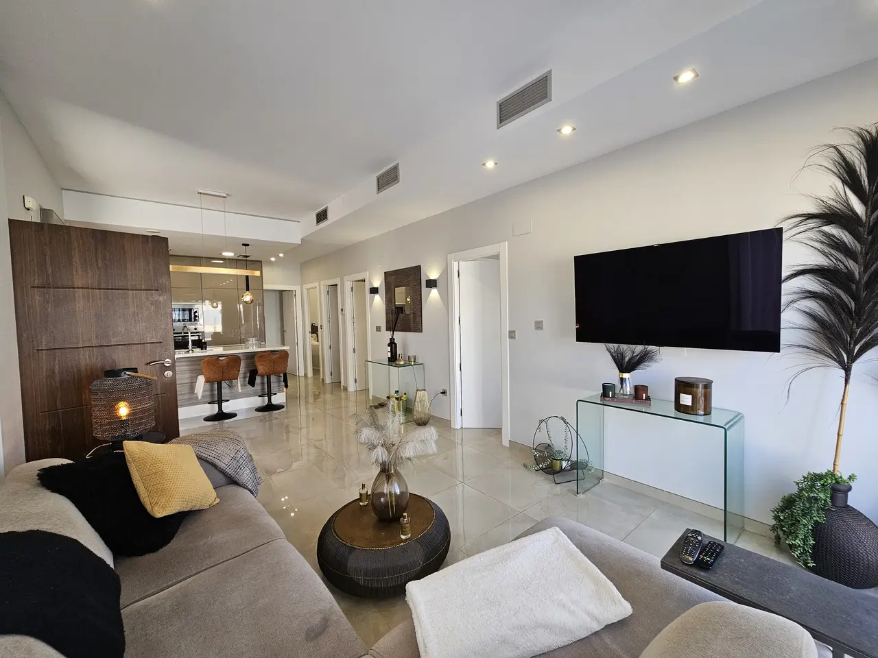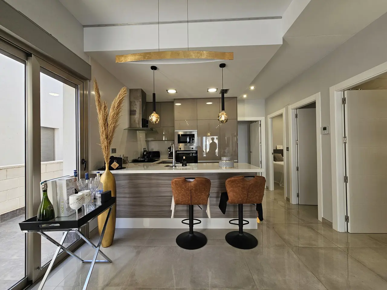 The villa features three bedrooms which come with built-in wardrobes, allowing for efficient use of space. There are also two bathrooms, one of which is an en-suite, adding convenience for residents and guests alike. The living space includes an open-plan kitchen that is fully equipped, complete with a breakfast bar that is ideal for casual dining.