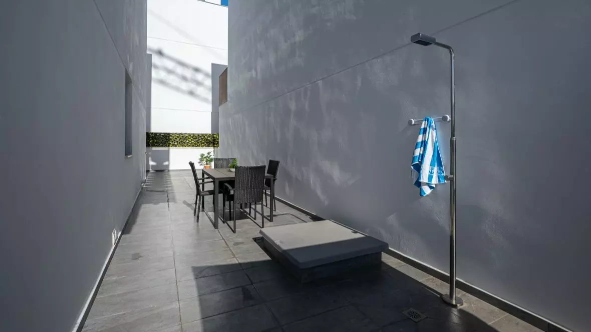 The exterior of the villa is designed for minimal maintenance. A private pool enhances the outdoor area, allowing residents to enjoy the Mediterranean climate year-round. The property is also fully furnished, including modern decor and premium finishes, making it move-in ready.