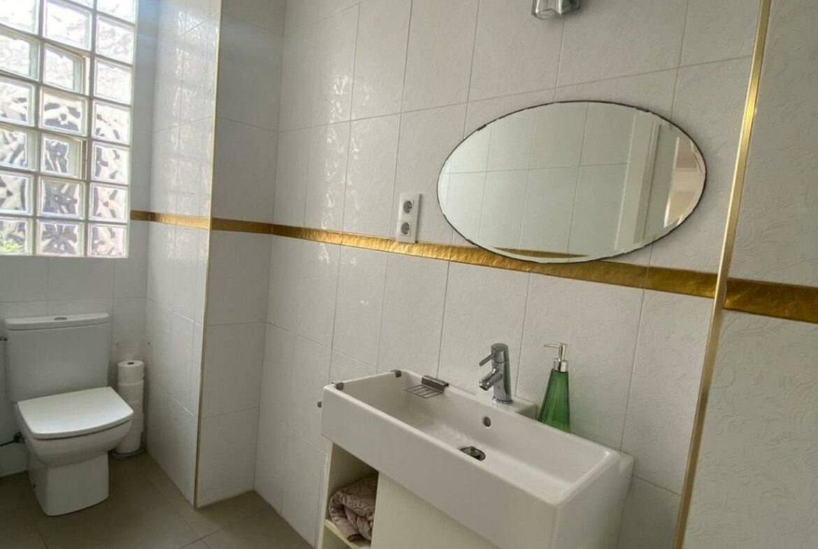 The exterior of the villa displays architectural features typical of the region. The construction style utilizes local materials, which may appeal to those interested in the area’s traditional designs. The surrounding outdoor space can accommodate landscaping and recreational activities, making it suitable for outdoor gatherings or personal use.