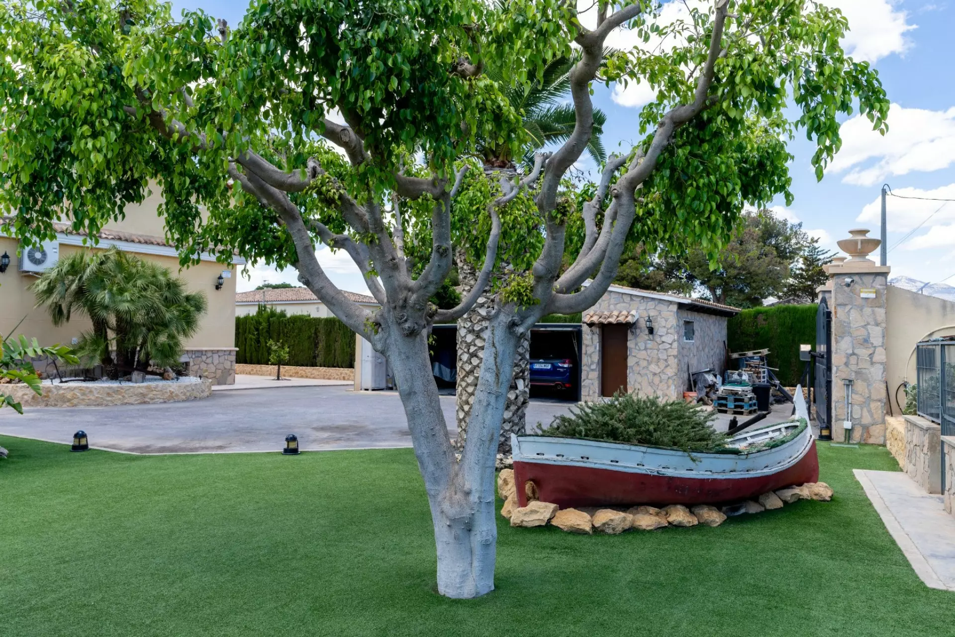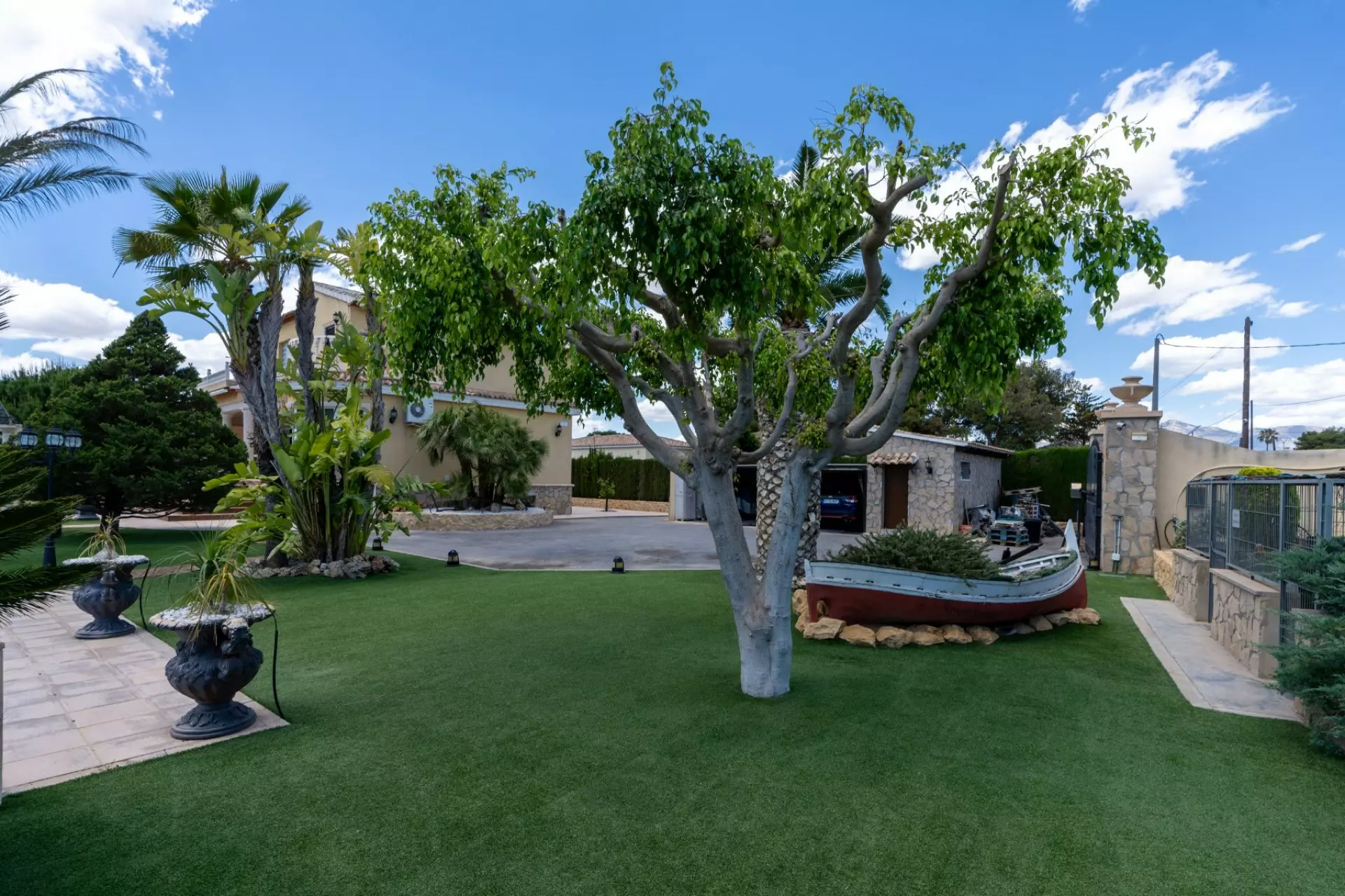 If you are searching for a property in San Vicente del Raspeig, this villa might be what you are looking for. Set on a generous plot of 2,050 square meters, this expansive home spans 450 square meters. It is surrounded by various trees and palm trees, creating an inviting natural atmosphere. The outdoor areas are designed for enjoying the sunny climate of Alicante, making it an ideal spot for relaxation and leisure activities.