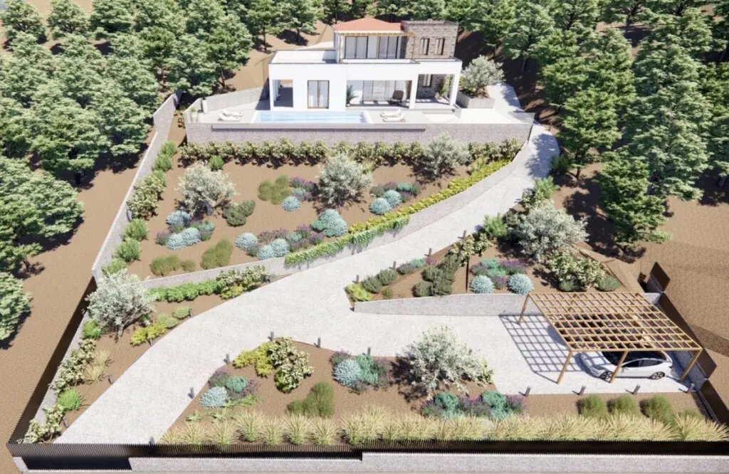 This villa offers a view of the sea and forest from the windows, enhancing its natural appeal. It includes practical installations such as solar panels for water heating, air conditioning for climate control, and heating systems for those cooler days. A barbecue area is included for outdoor cooking and entertaining. The property will come furnished, providing convenience for new owners.