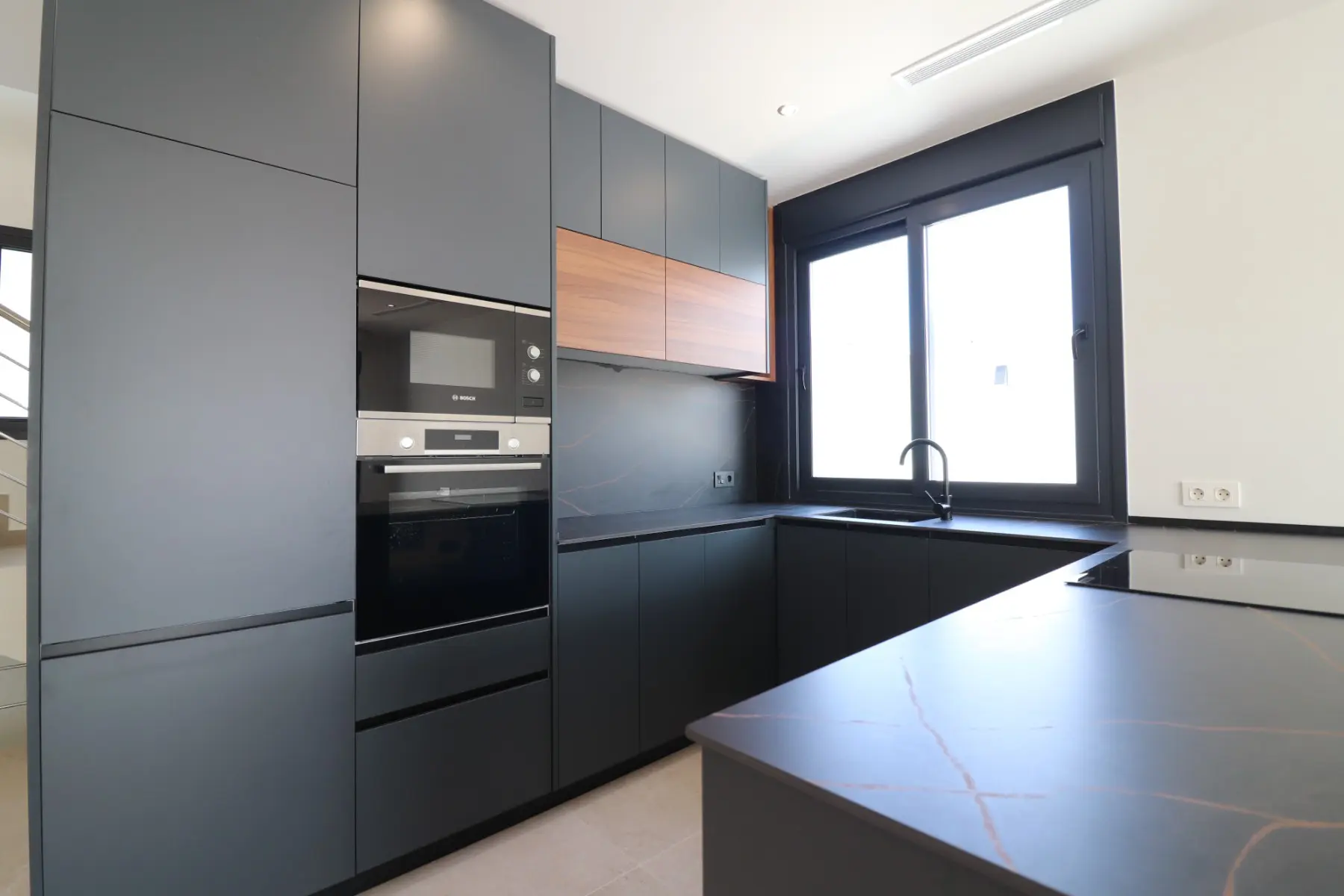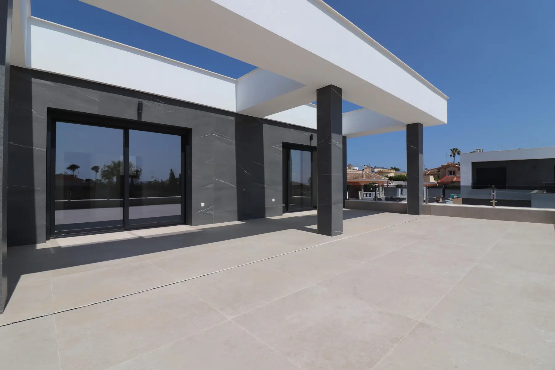 This villa offers a substantial build size of 311m², distributed over three floors, situated on a landscaped 550m² plot. The property features underfloor heating throughout with individual room controls, integrated air conditioning, and pre-installed setups for solar panels both in the underbuild and on the roof. Additionally, there is a pre-installation for an electric car charging point.