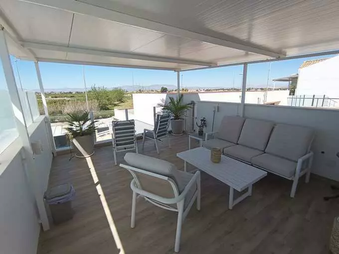 This detached villa is situated on a single level in the new section of Daya Nueva, which is conveniently close to the town center. With a total constructed area of 120 m2, this property offers a functional living space on a 242 m2 individual plot. It includes a private pool, making it suitable for outdoor activities and leisure.