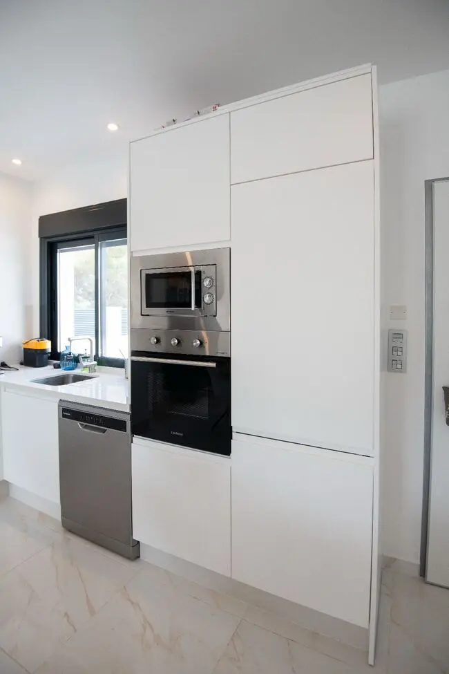 The property’s facade is constructed with double-walled ceramic bricks, separated by a rock wool thermal and acoustic insulation layer, achieving a total thickness of approximately 31 cm. Interior walls are built using 9 cm wide ceramic bricks, finished with gypsum plaster for a smooth surface and white paint top quality coating.