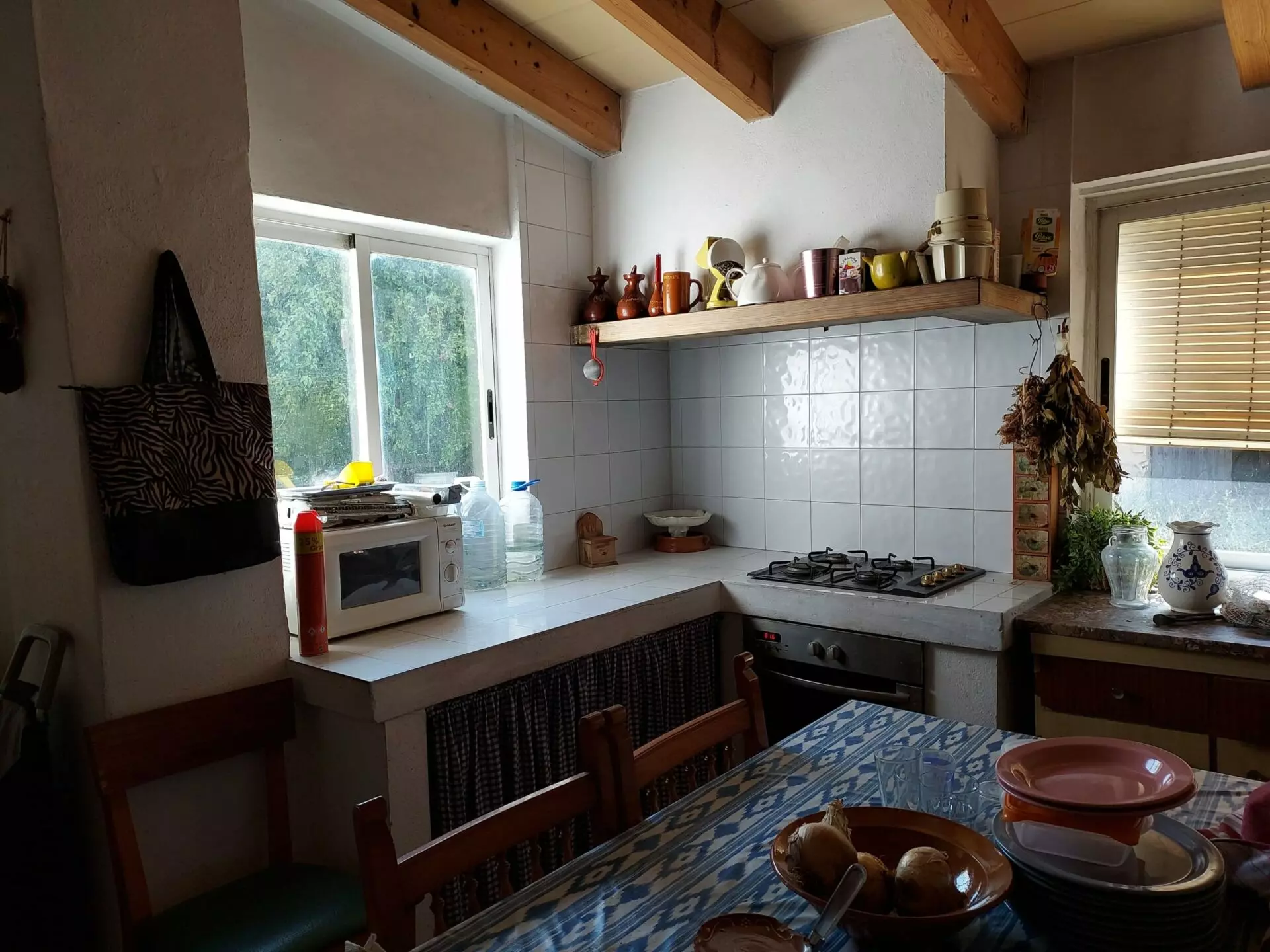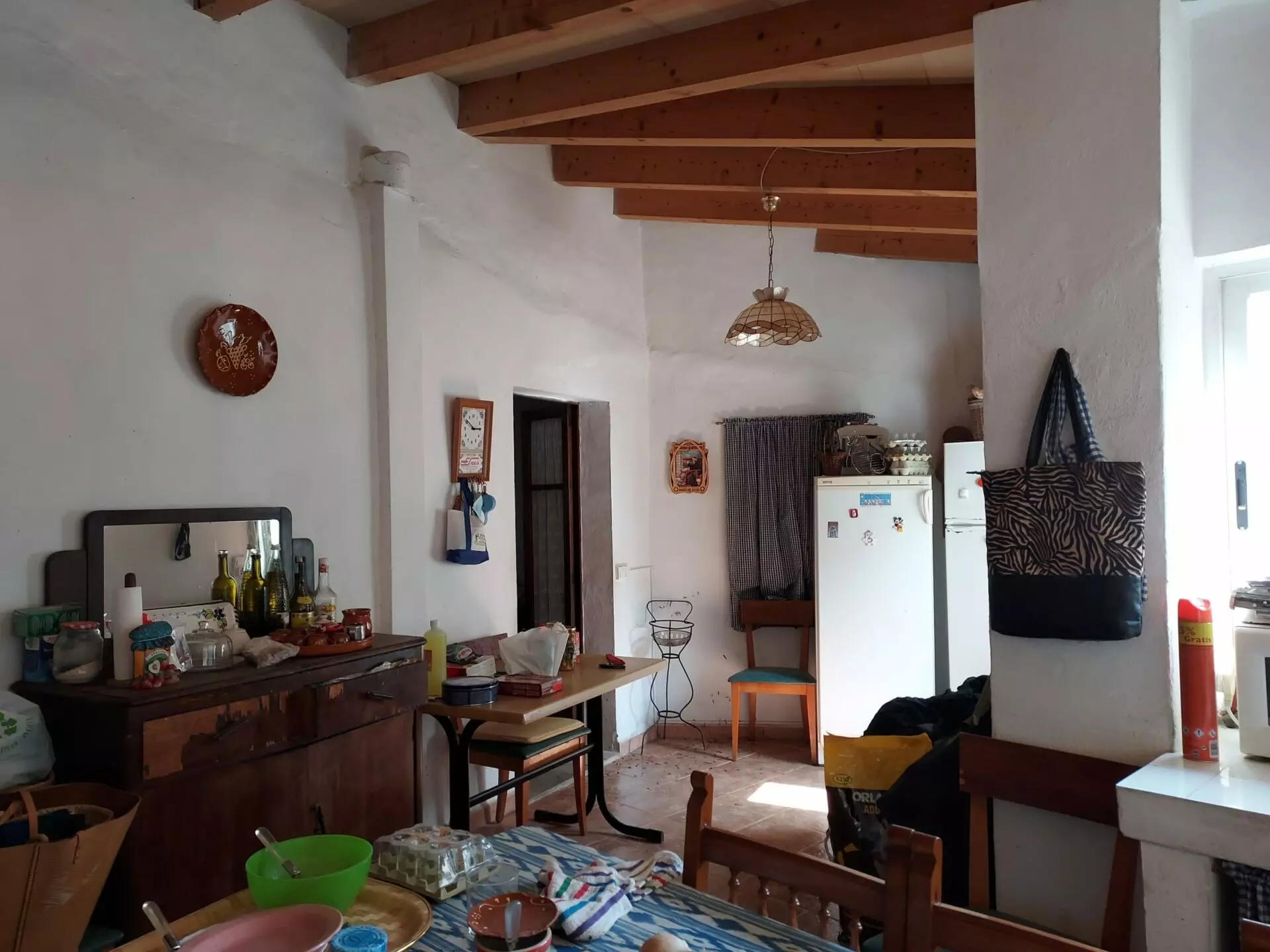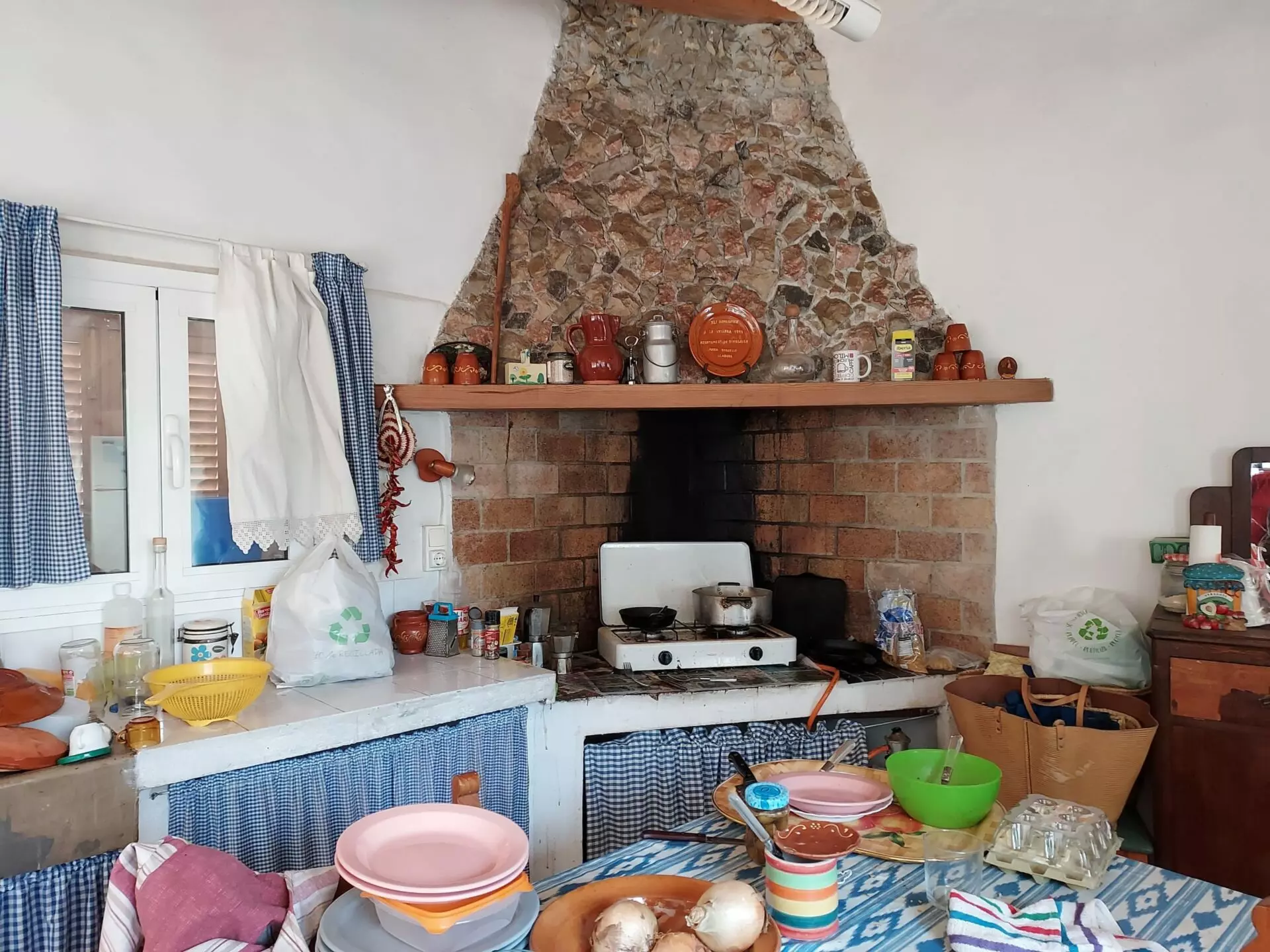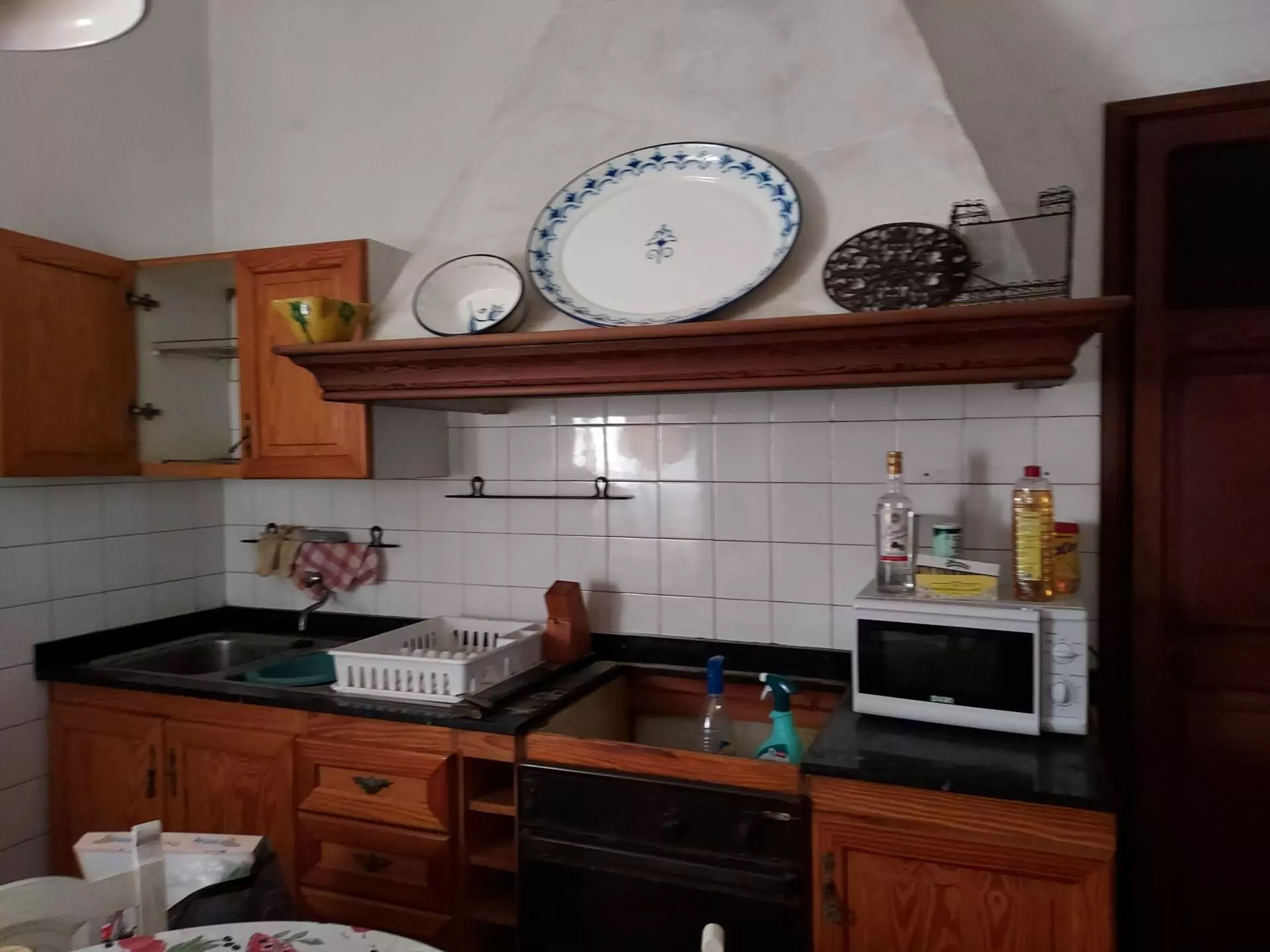 This chalet, built in 1950, spans approximately 175 m² and sits on the outskirts of the village along the road to Binigual. The single-story layout is divided into two sections, with the main part measuring 125 m² featuring three double bedrooms, a larger entrance hall, an interior lounge, and a kitchen combined with a dining area, plus a small bathroom. Connected via a passageway is the additional area of around 50 m², which includes its own entrance from the front patio. Currently configured with a lounge and kitchen, this space has potential for renovation into a sizable ground-floor studio apartment with a kitchen, dining, and living space.