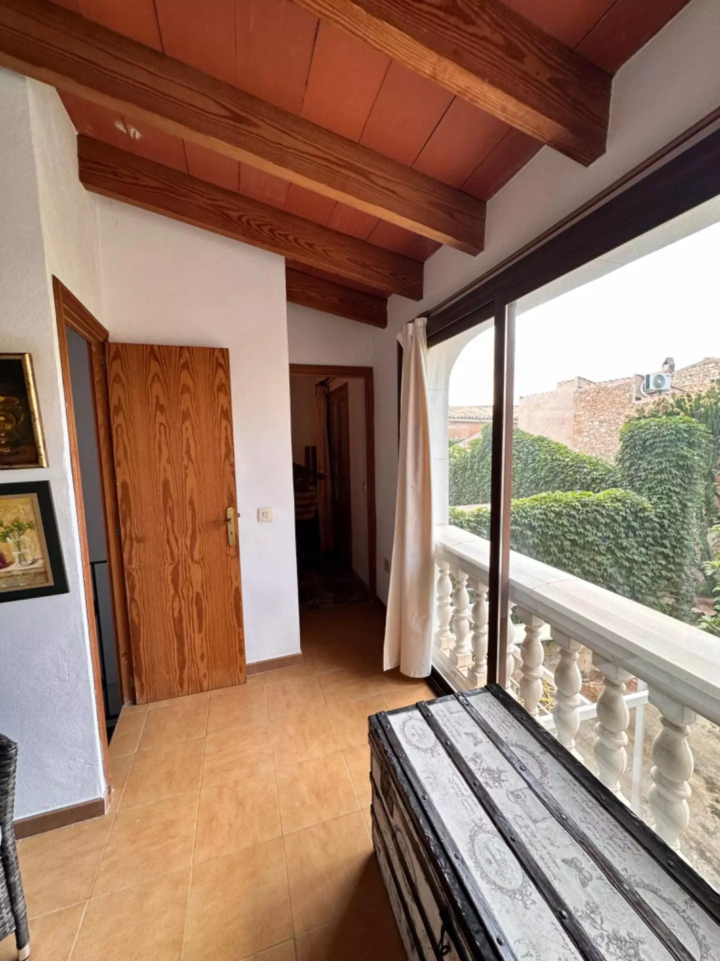 A traditional property located at the very center of the village boasts open views of the Plaza and church from the front. This house features a private courtyard at the rear and a garage. Equipped with seven bedrooms and two bathrooms, the property also includes a kitchen with a pantry and various living spaces, along with a small chapel. The 190m2 walled courtyard provides an area for peace and privacy. The adjoining garage offers secure parking and easy access to the house without entering the pedestrianized central plaza. This property is ideal for individuals seeking a generous house in a traditional village while still enjoying modern conveniences.