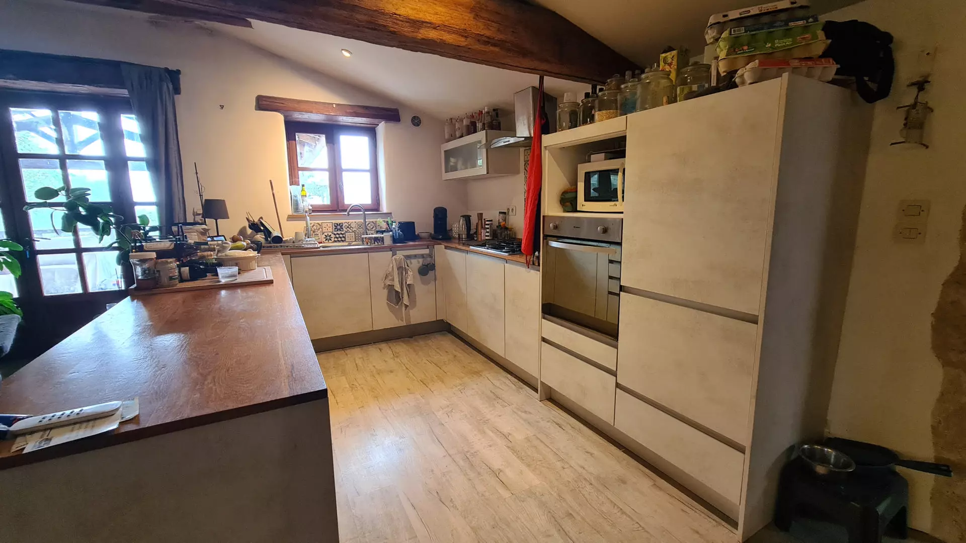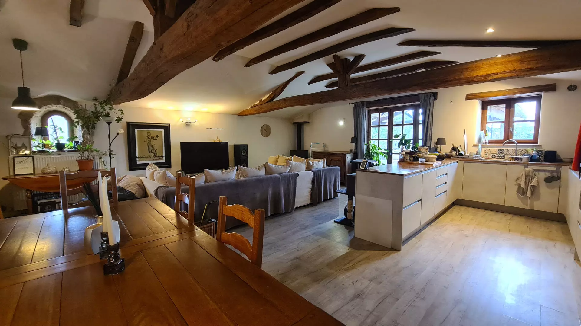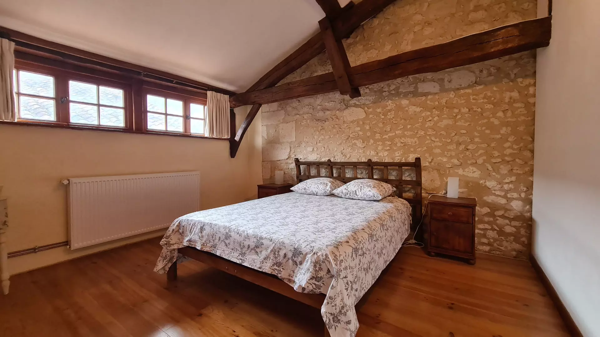 This real estate offering is located in a village close to Aubeterre-sur-Dronne, featuring a main house with four bedrooms, alongside two guest houses. One guest house contains one to two bedrooms, a garden, and a garage, while the other guest house has two bedrooms situated next to a swimming pool. Each residence benefits from gas central heating and is linked to mains drainage, ensuring modern amenities are in place.