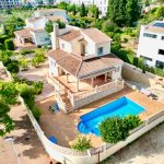 The estate’s entrance is marked by an automatic wrought-iron gate, leading into a well-maintained park covering roughly 1.5 hectares. The outdoor area features a raised swimming pool measuring 6 x 12 meters, complete with a Roman staircase.