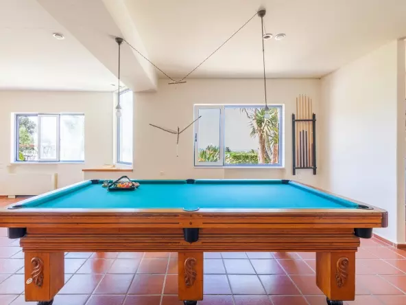 Ground Floor: A single, bright space that hosts the living room, dining room and a fully equipped kitchen, as well as a pool table for moments of entertainment.