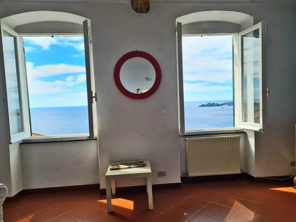 This apartment, characterized by a wide panorama sea view facing Portofino, is in a characteristic Genoese house and has an independent entrance.