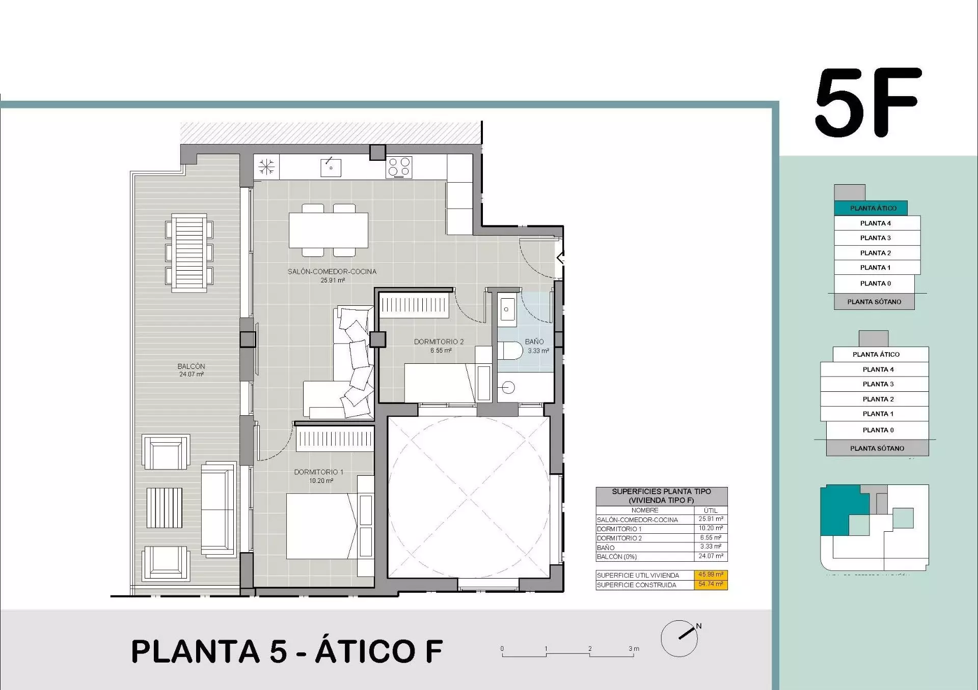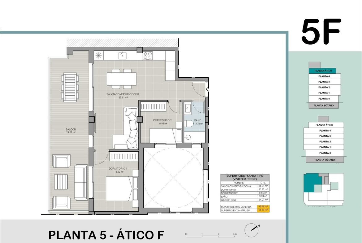 Located just 60 meters from El Acequion Beach, this residential building offers a collection of 23 functional homes. These include options for 1, 2, and 3 bedroom apartments, as well as penthouses featuring large private terraces. For added convenience, there’s the option to purchase underground parking spaces.